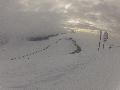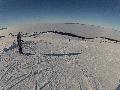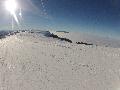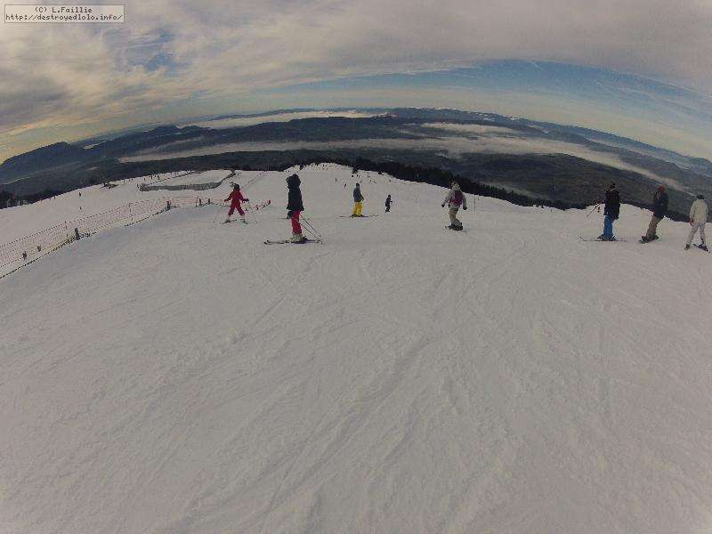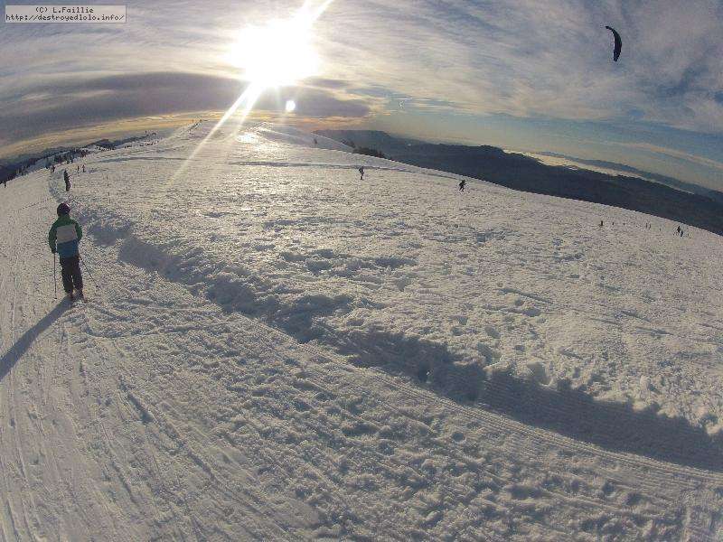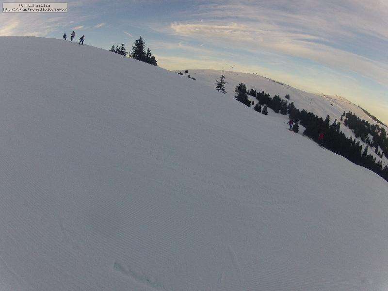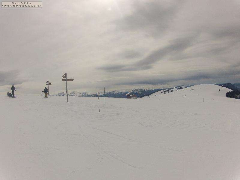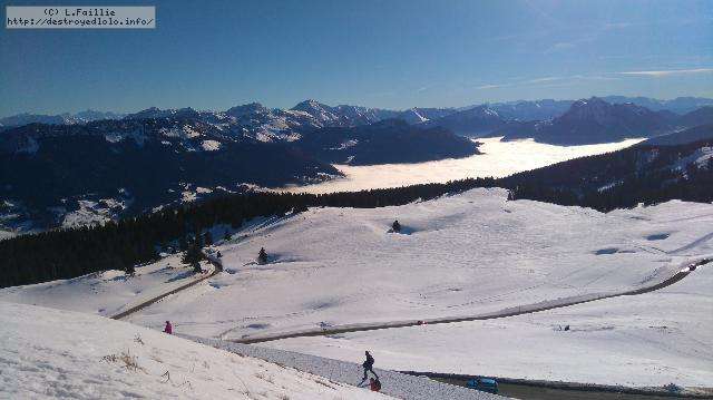 D'en bas, nous voyons le sommet du Semnoz ensoleillé, mais ça ne sera que pour une courte durée : en haut, c'est LA TEMPÊTE ! Grosse grosse peuffe pour une balade d'anthologie en raquettes.