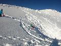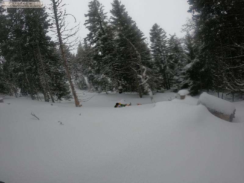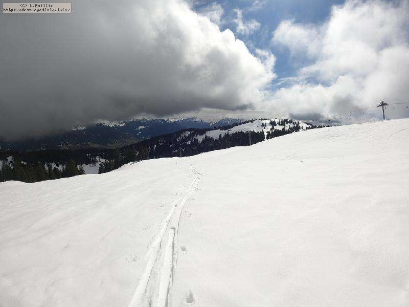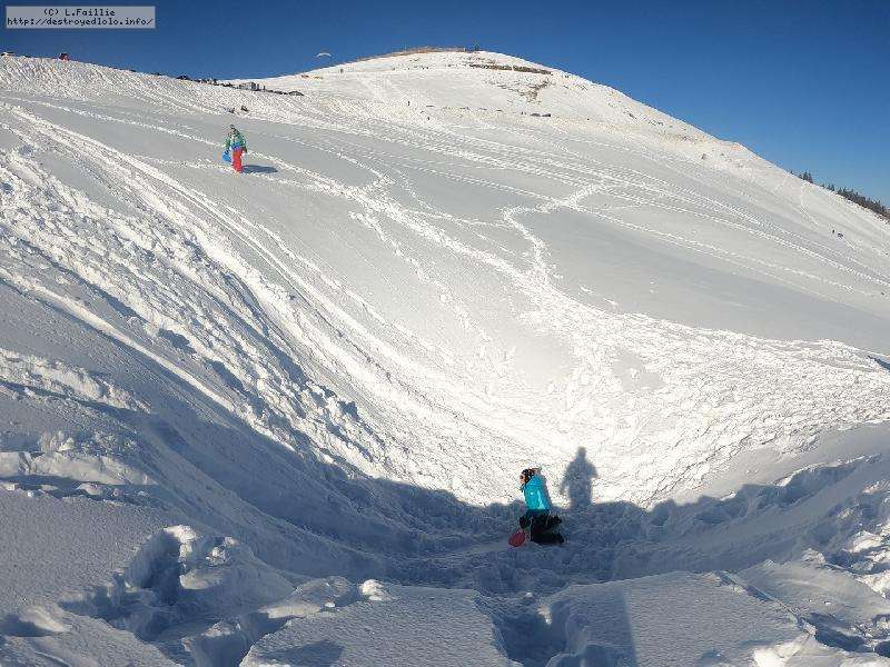 Mais la bonne surprise se situe au niveau des descentes : les quelques centimètres de fraîche qui sont tombés dans la nuit gomment complètement les séquelles des coups de chaud de ces derniers jours et les trous/bosses des passages précédents. Bref, du tout bon et surtout un bon plaisir de glisse.