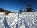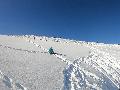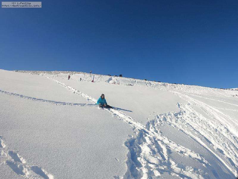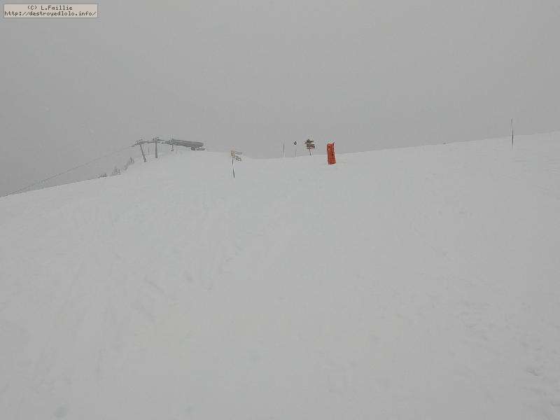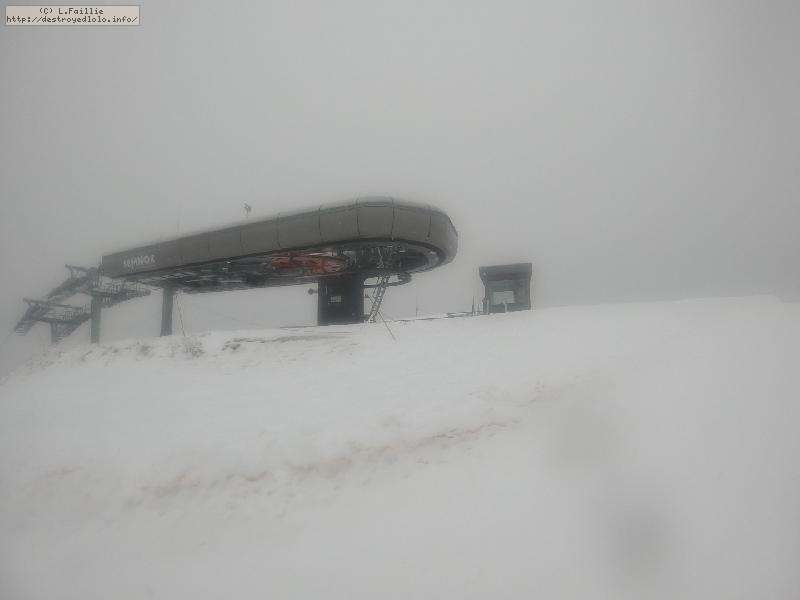 Changement de porteur des skis, direction le sommet du télésiège ... mais la descente sera épique : il se met à neiger dru. Et franchement, elle se fera au jugé lorsqu'on n'a pas pensé à prendre un masque (non, les lunettes de soleil ne sont pas une bonne idée).