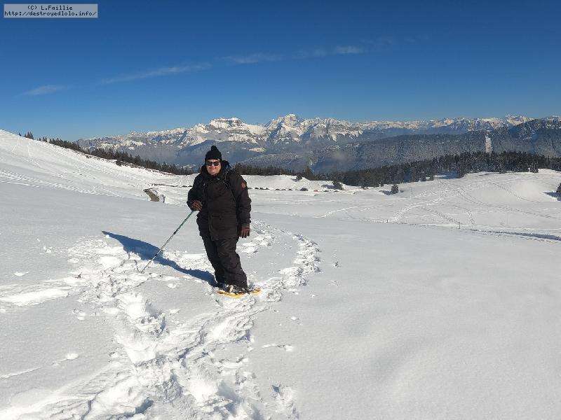 Grosse peuf au Semnoz : impossible de louer la moindre paire de ski de rando, du coup, raquette pour Joris et son papa.