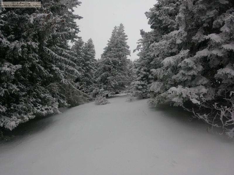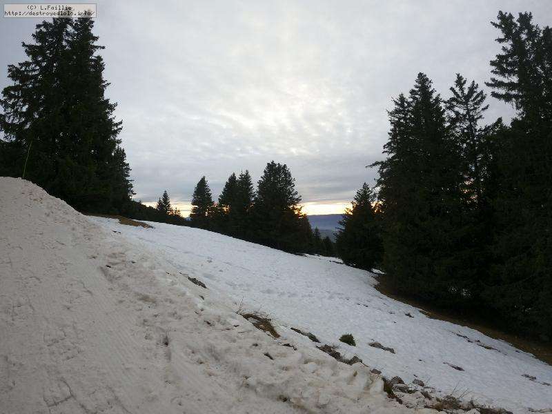 Arrivé en haut, la nuit est là ... je décide donc de redescendre par "Sapinettes". Franchement, je me suis tâté de redescendre par "Dahu", mais vu la visibilité moyenne, je dois rester prudent : dommage de louper une telle peuf ! Bon, sur la fin, j'avoue que le naturel a repris le dessus.