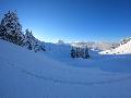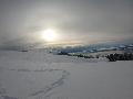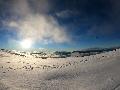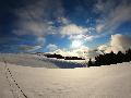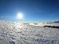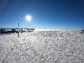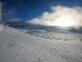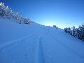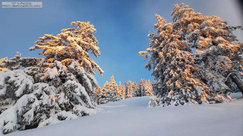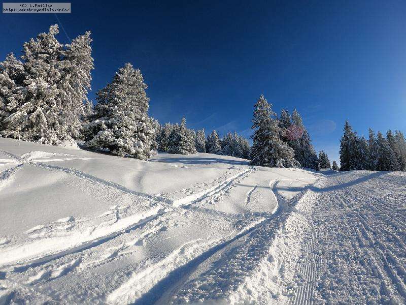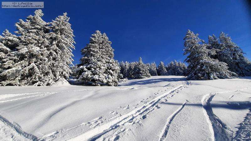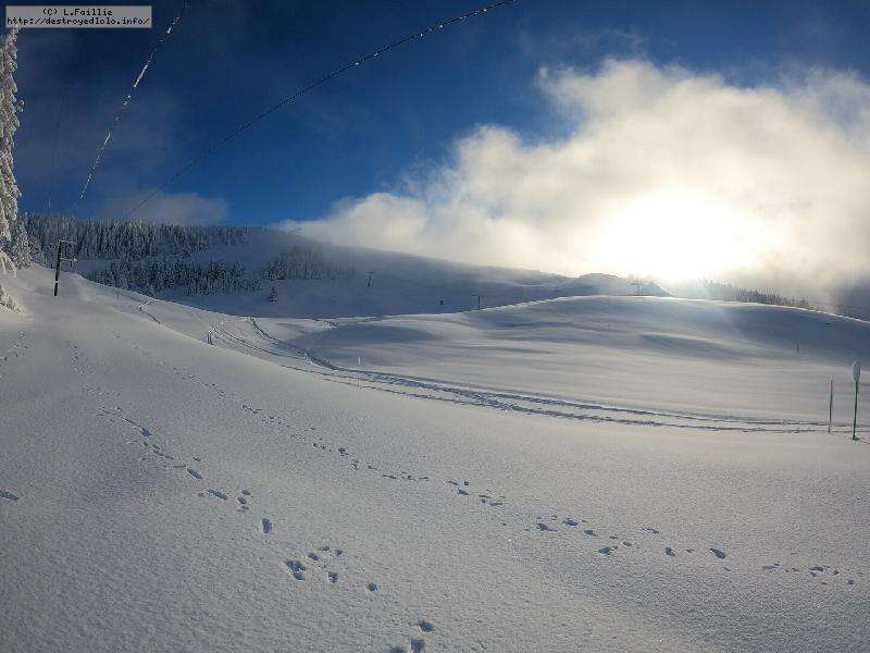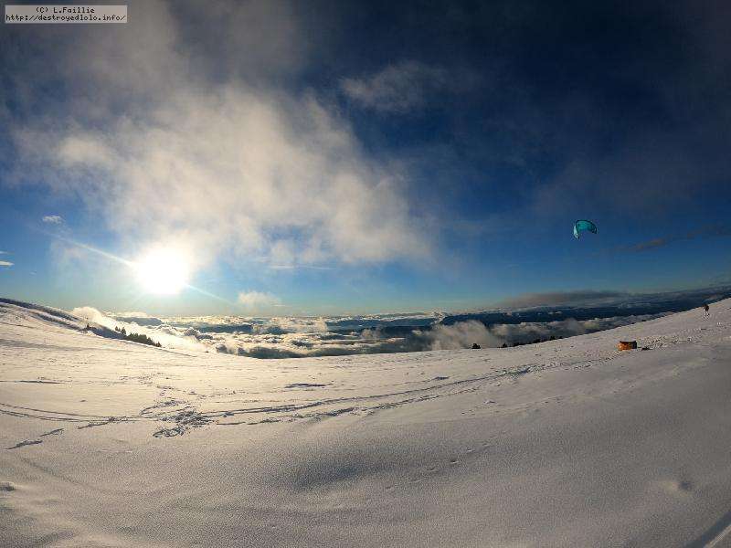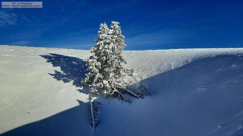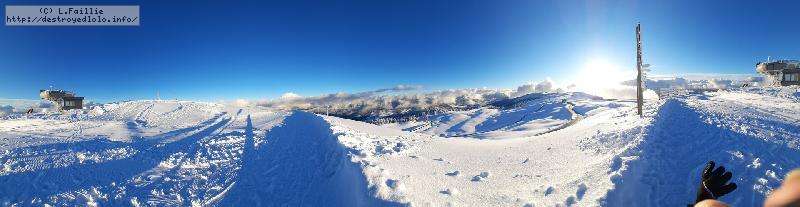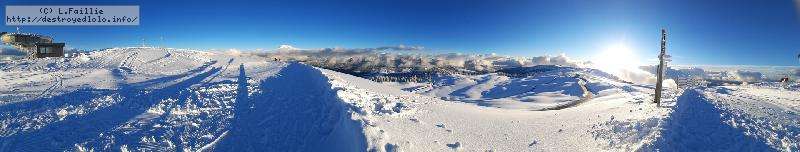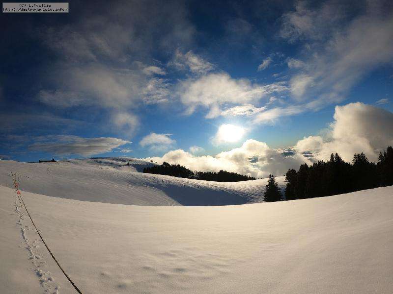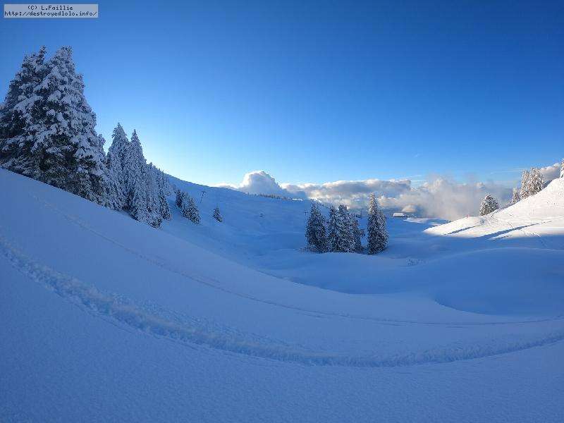 Tempête de soleil avec les quelques centimètres qui sont tombés la veille. Un peu de vent au sommet et des nuages qui arrivent en fin de journée : ça sera la peuf des jours qui viennent.