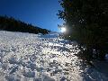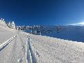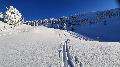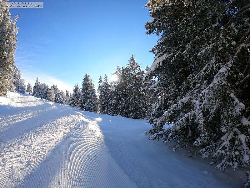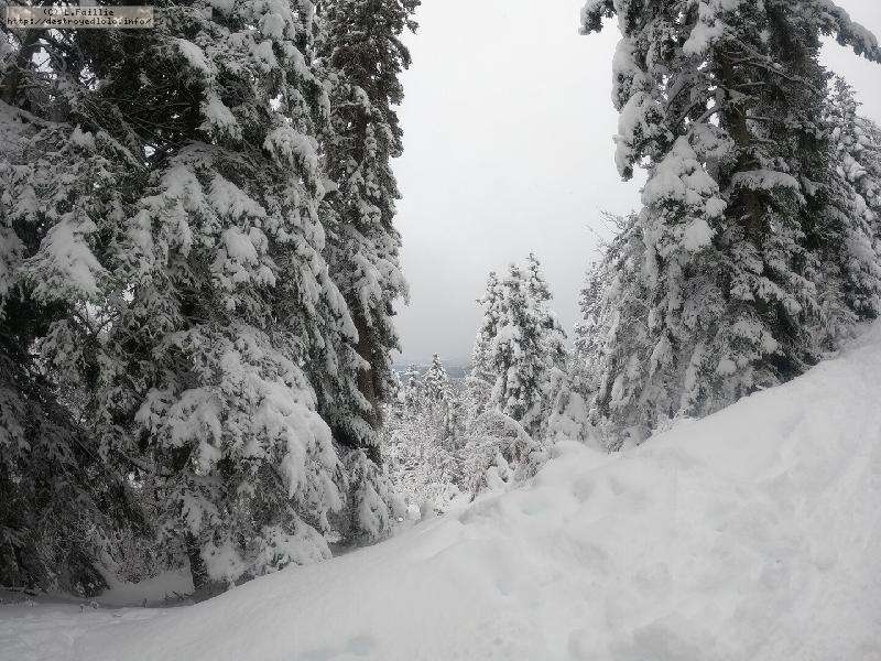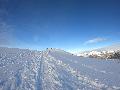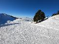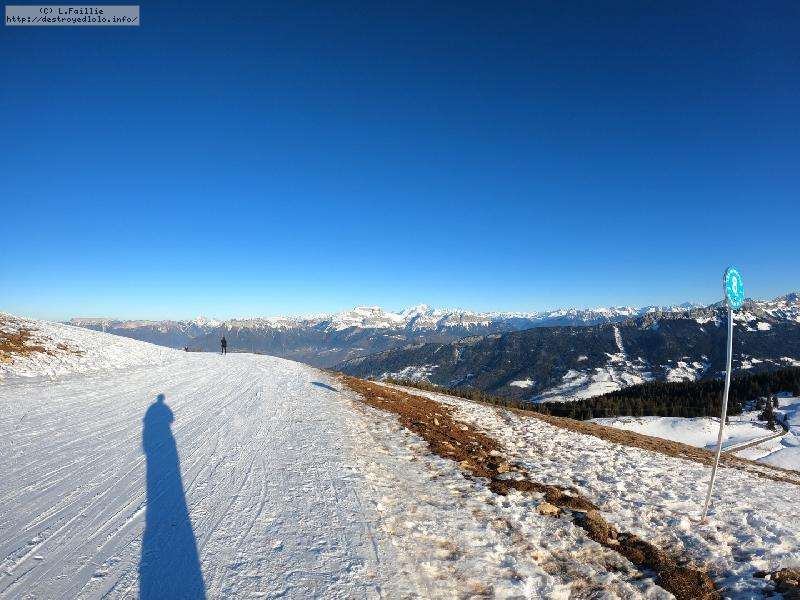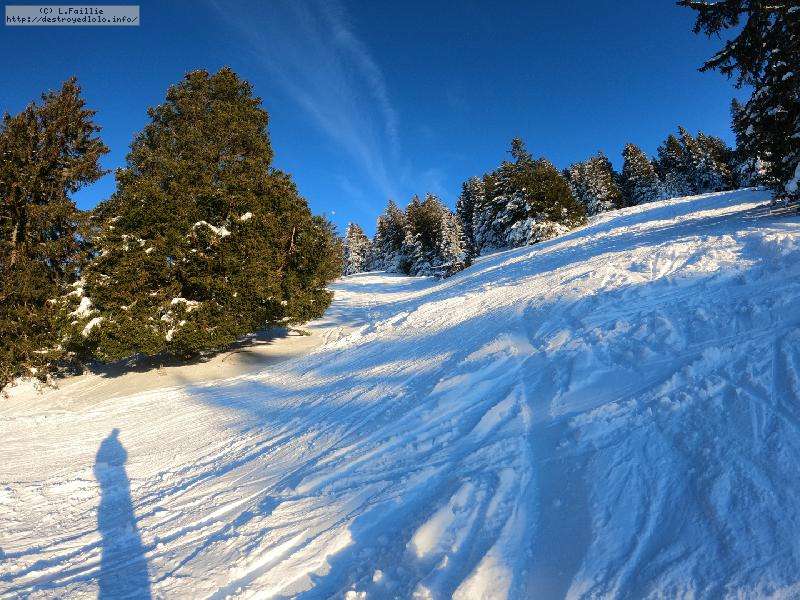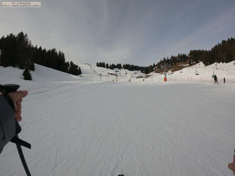Petite rando sans prétention, où je commence par la maintenant classique montée par la noire du Dahu. La neige est à présent dure (sauf sur la noire qui voit rarement le soleil) et les hors-pistes complétement massacrés par les dameuses.