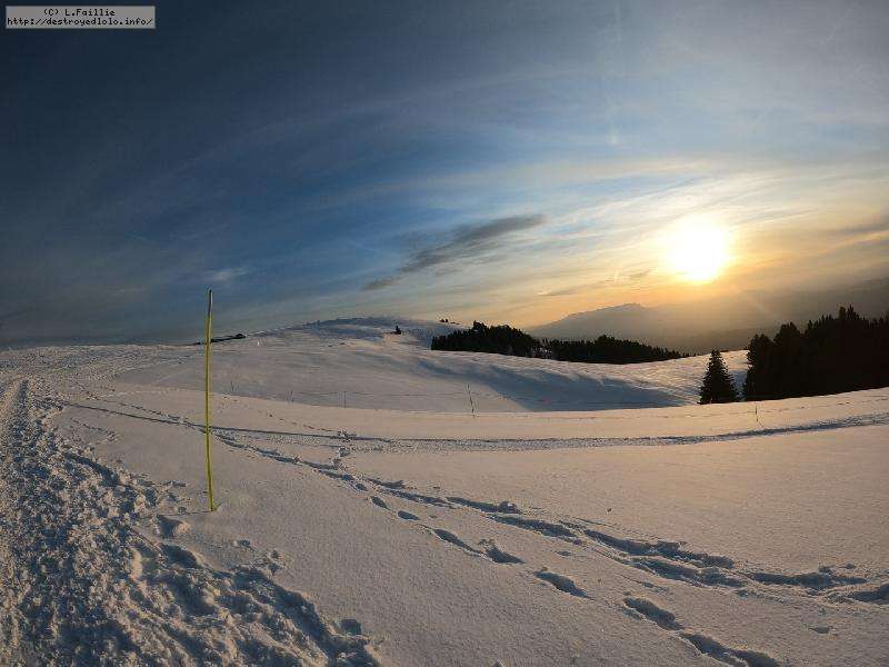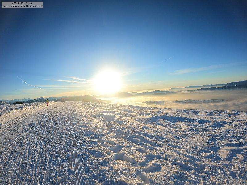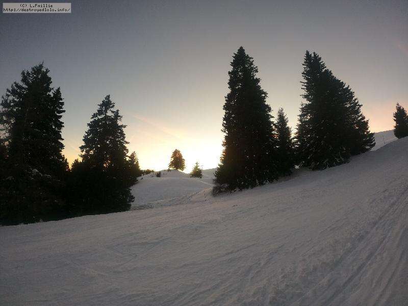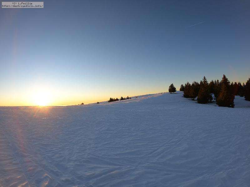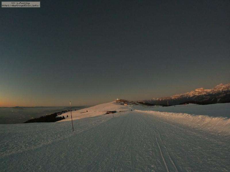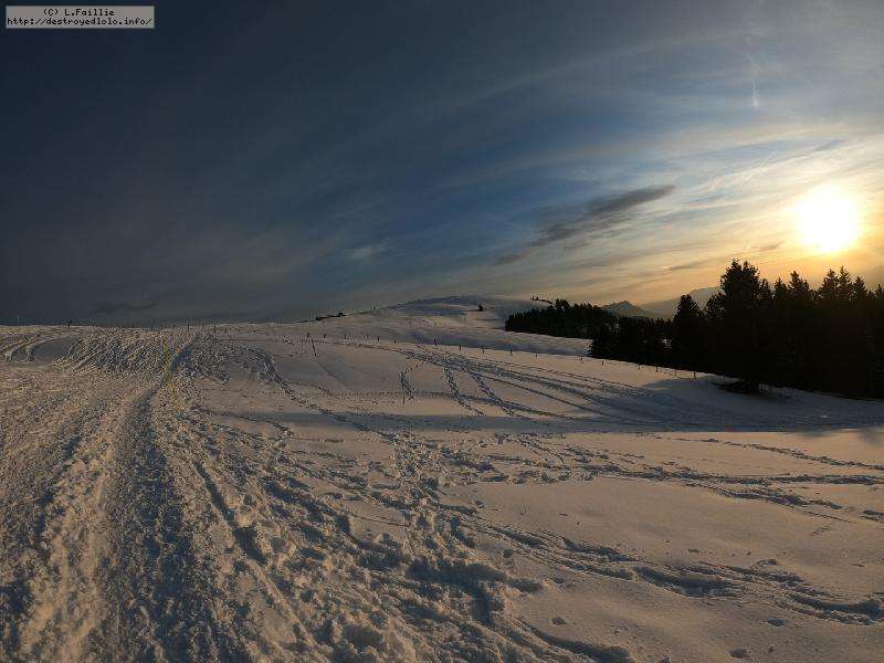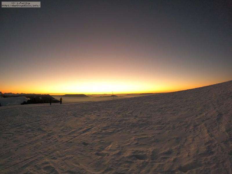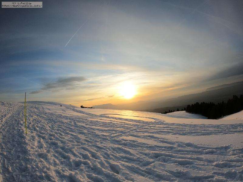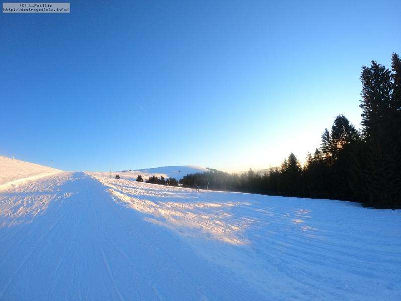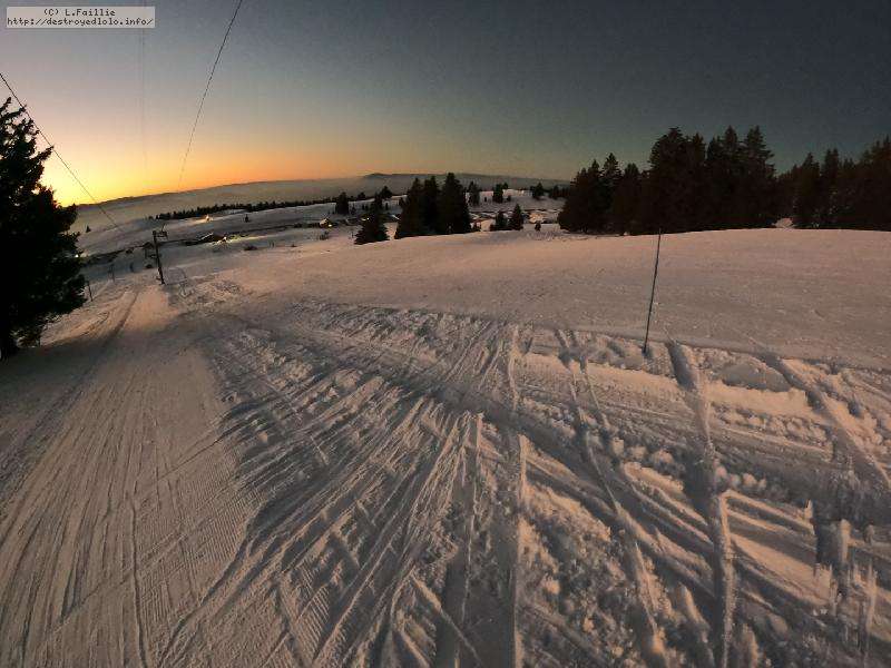 Je ne monte pas dans l'espoir de faire "grand ski" mais juste pour jouer avec les paramètres de ma GoPro et faire un peu d'exercice ... et l'objectif est parfaitement rempli avec un couché de soleil simplement MAGNIFIQUE.