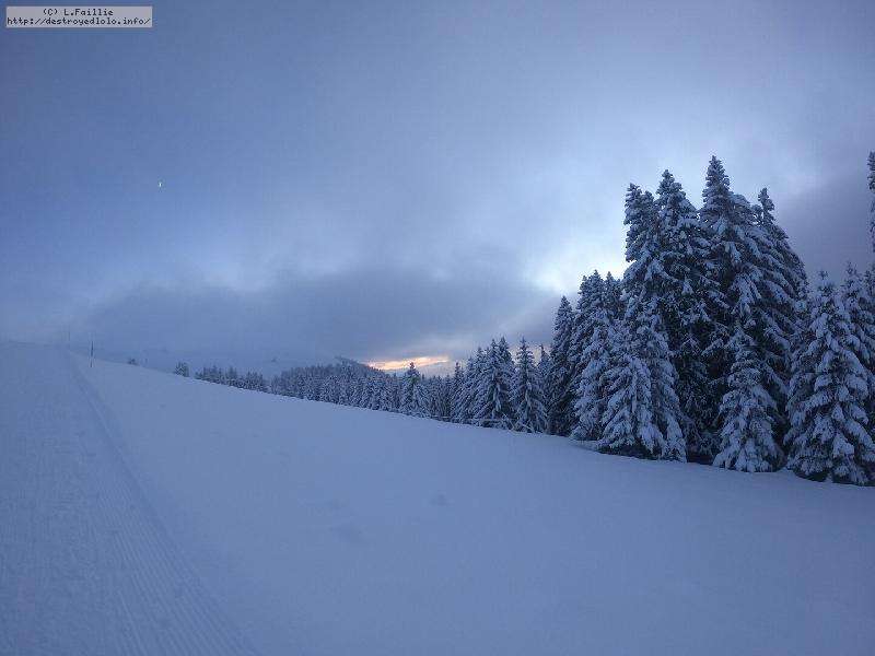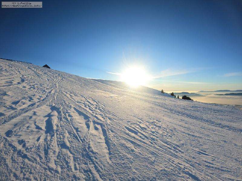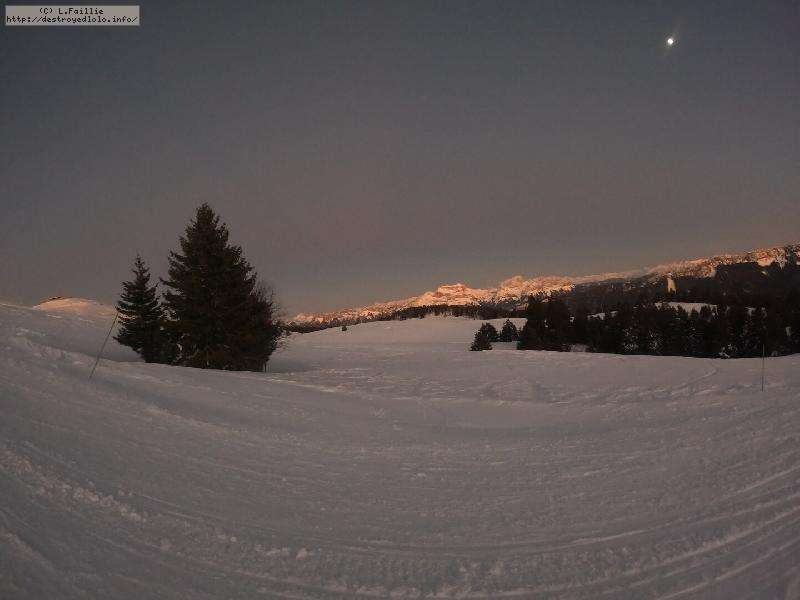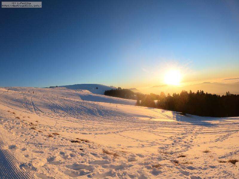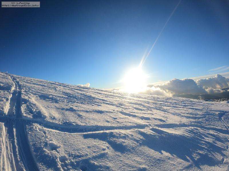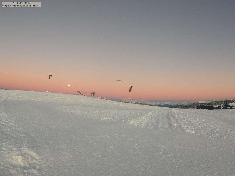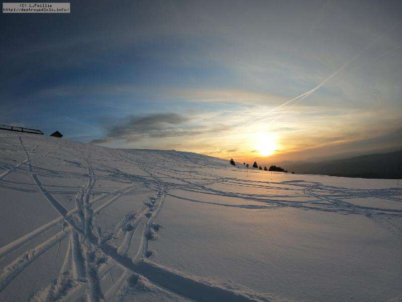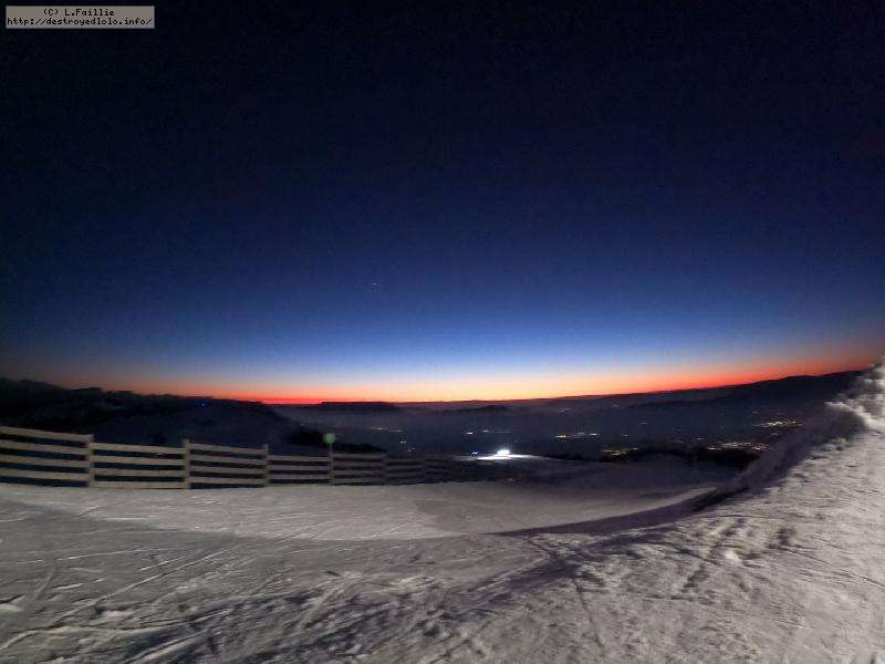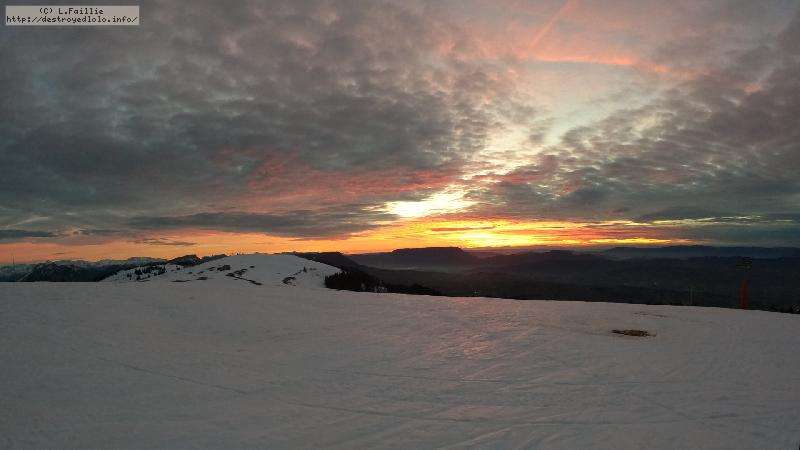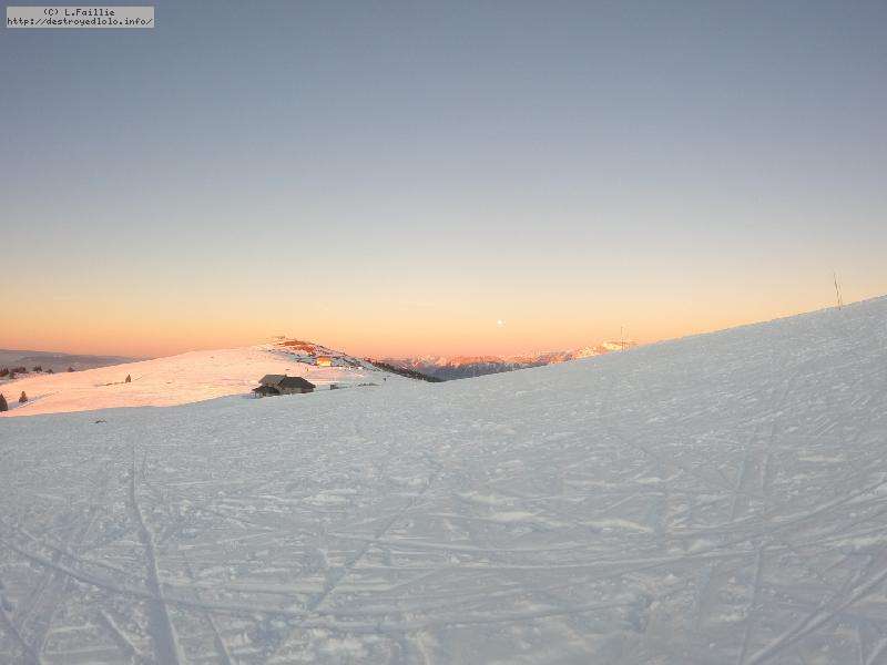 Je ne monte pas dans l'espoir de faire "grand ski" mais juste pour jouer avec les paramètres de ma GoPro et faire un peu d'exercice ... et l'objectif est parfaitement rempli avec un couché de soleil simplement MAGNIFIQUE.