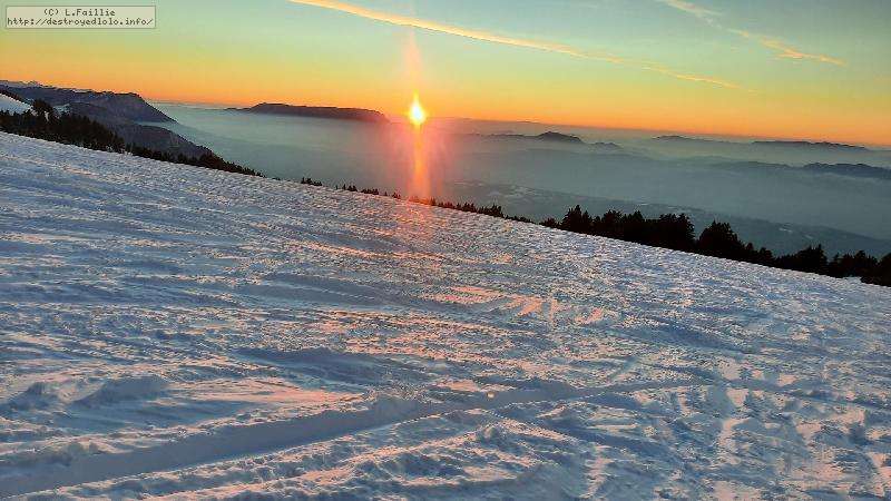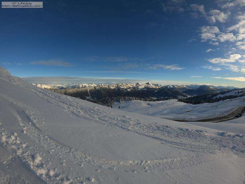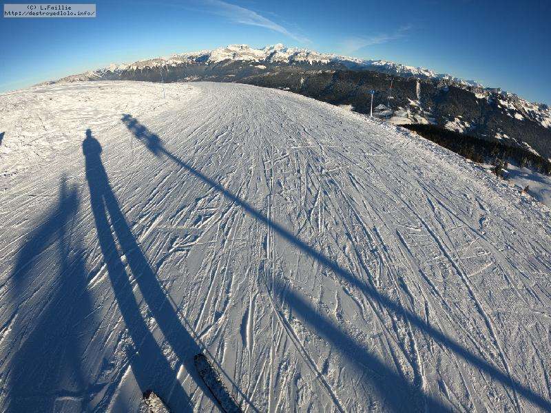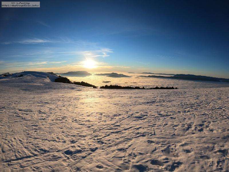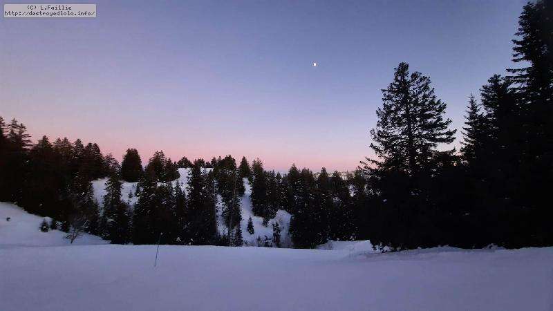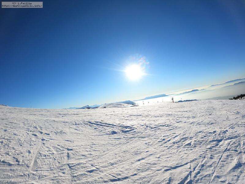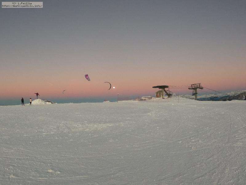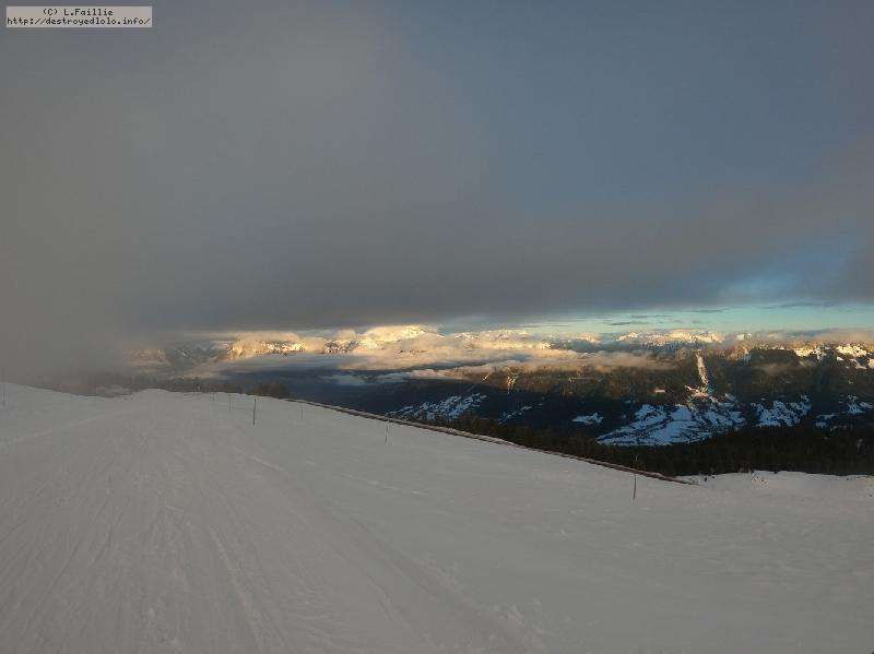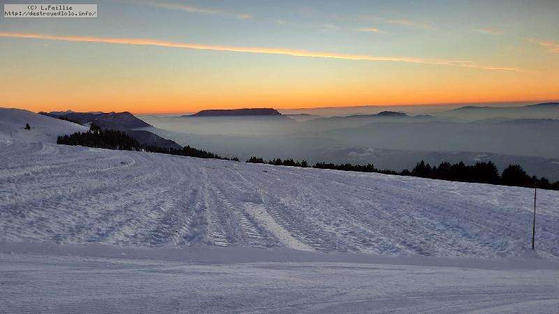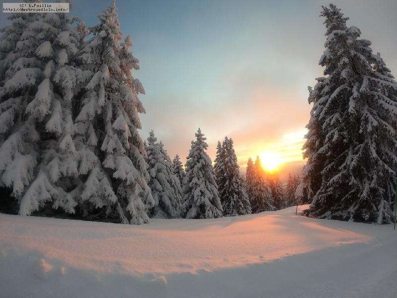 Je ne monte pas dans l'espoir de faire "grand ski" mais juste pour jouer avec les paramètres de ma GoPro et faire un peu d'exercice ... et l'objectif est parfaitement rempli avec un couché de soleil simplement MAGNIFIQUE.