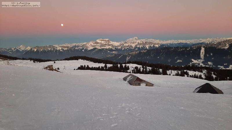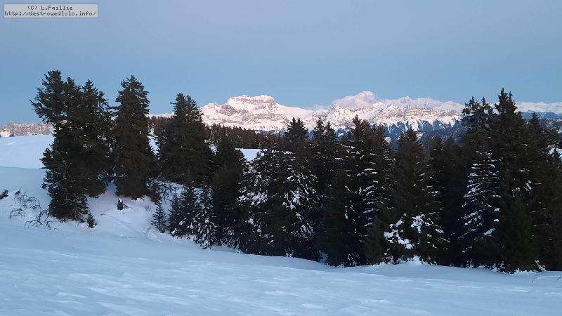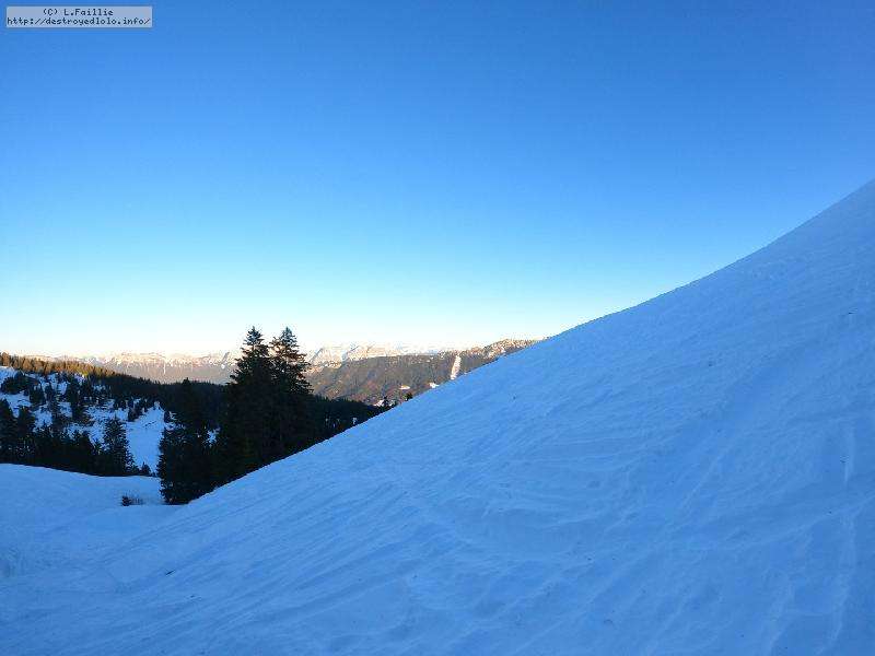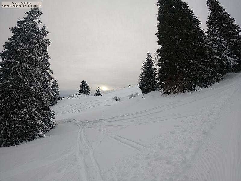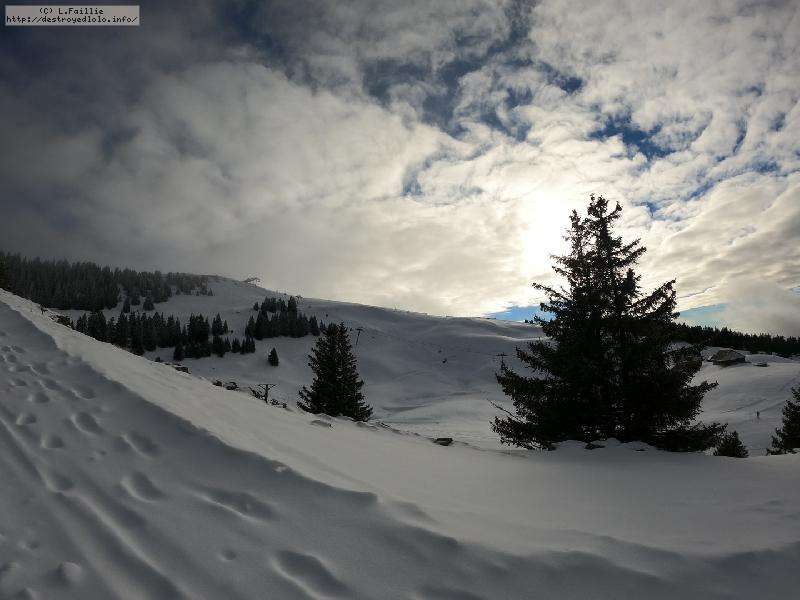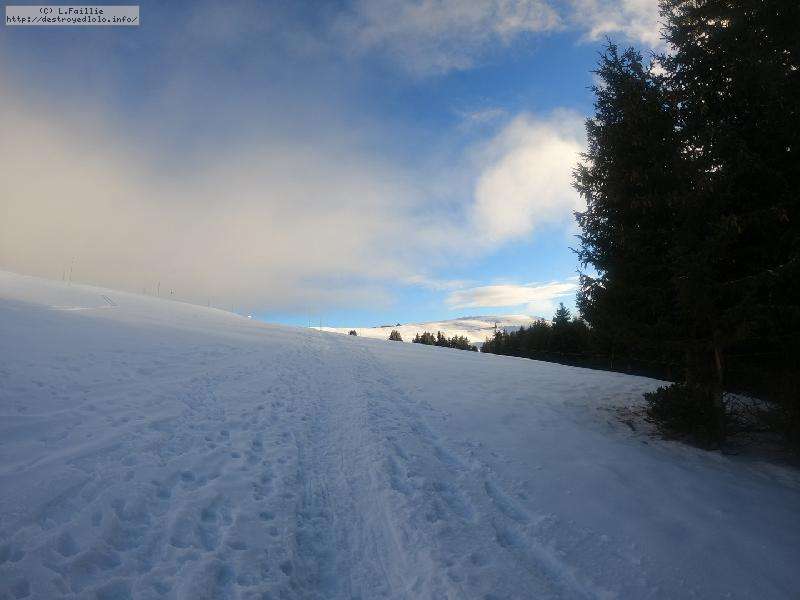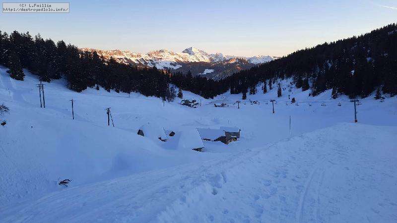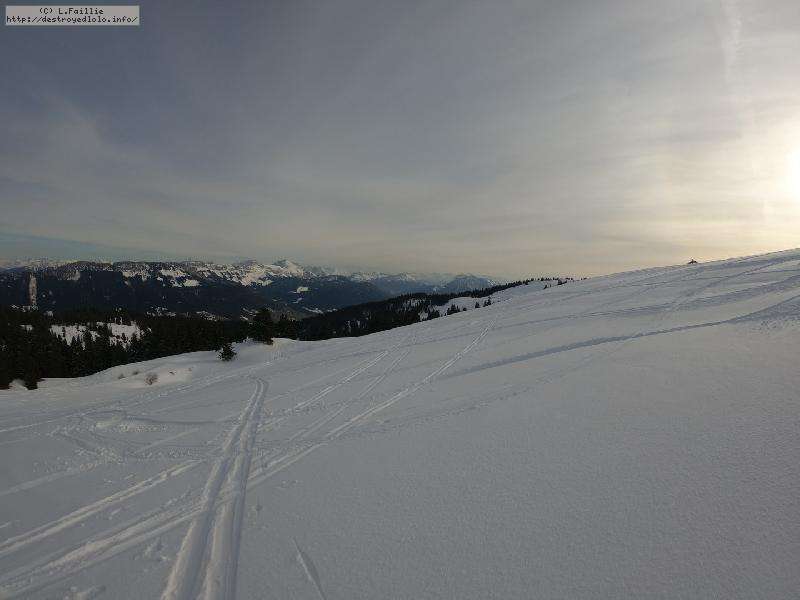 En plus de skier, mon but était aussi de prendre le coucher de soleil ... et vu que ça me laisse un peu de temps, je fais "le grand tour" en descendant jusqu'à côté Beauges.