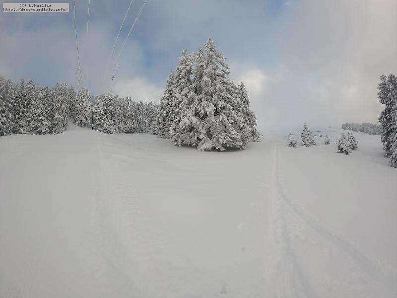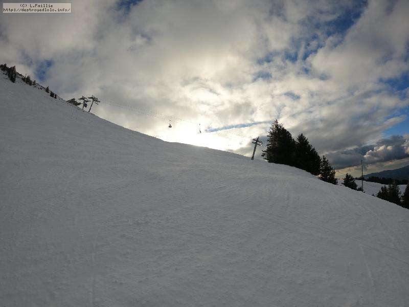 Avec les précipitations des 2 derniers jours et à la vue des webcams, je m'attendais à une petite couche de peuf sympa. Alors la couche est en effet petite (5 à 10 cm maximum) et suffisant pour cacher la misère, mais la peuf est remplacée par une bouillasse un peu lourdes, mais qui reste agréable à skier.
