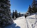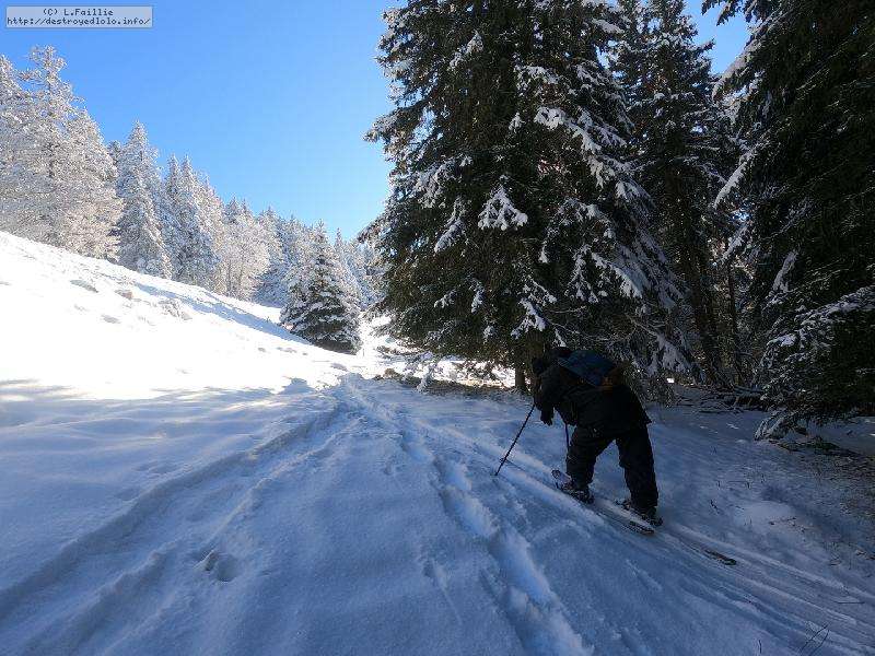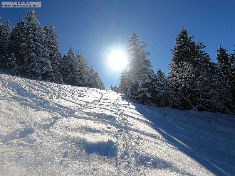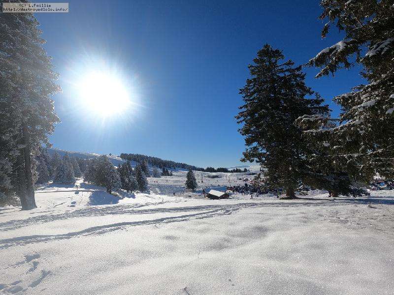 Ce n'est qu'arrivé à la station que la couche au sol devient suffisante. Pas mal de gamins en luge et quelques randonneurs : je ne suis pas le seul à attendre avec impatience l'or blanc !