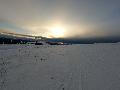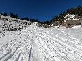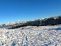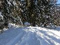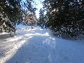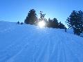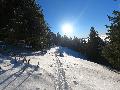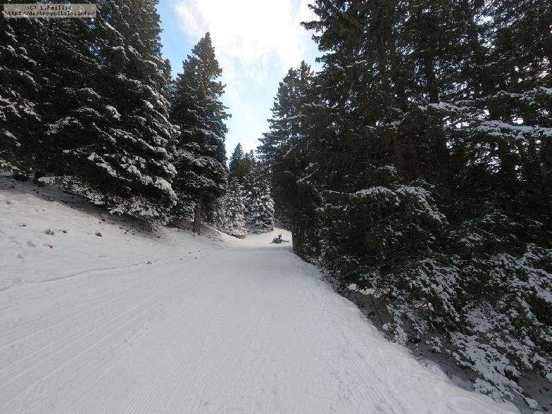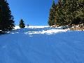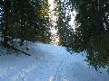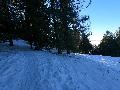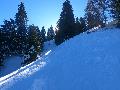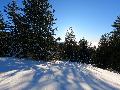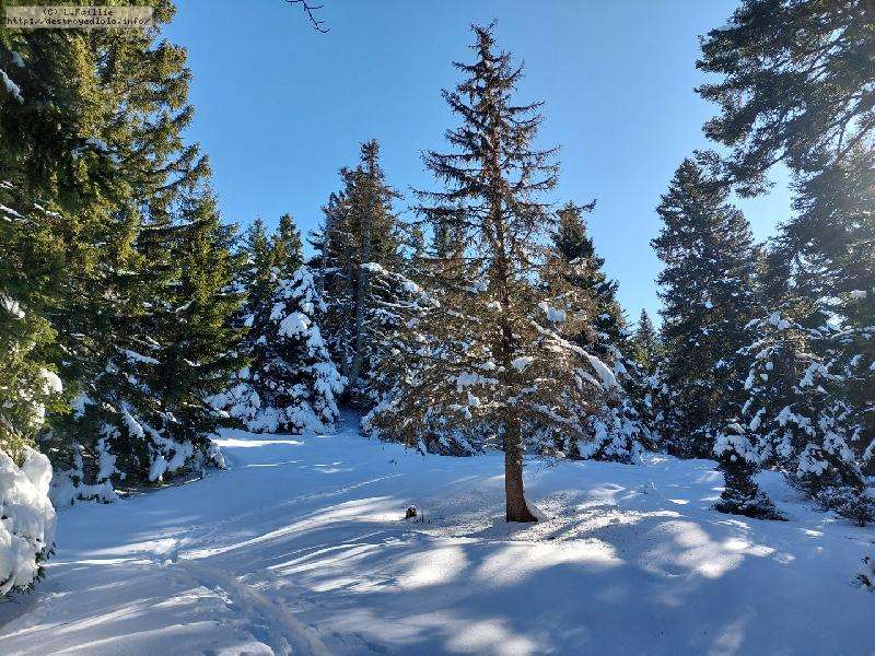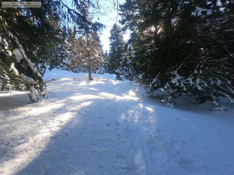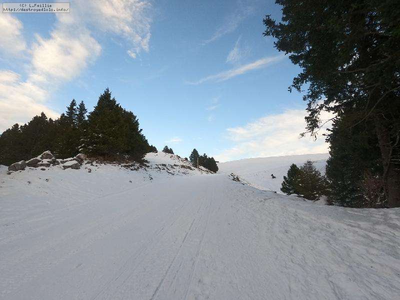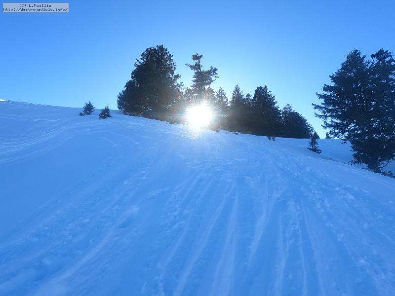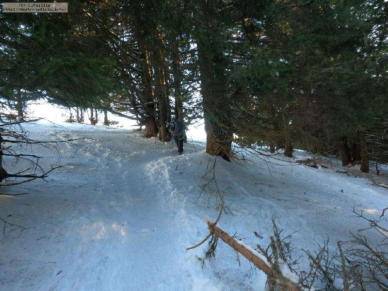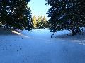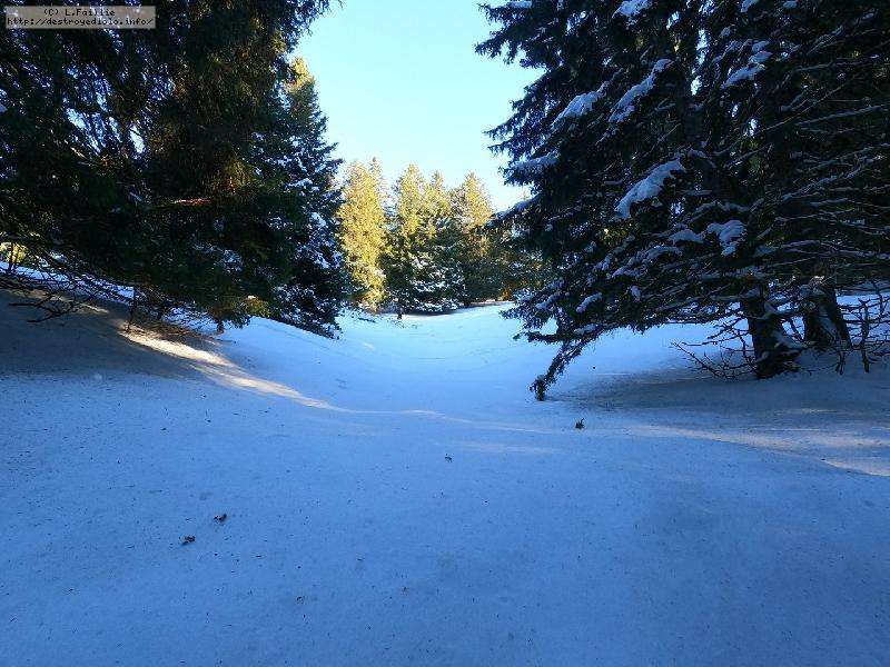 Le domaine n'étant pas très haut, et vu les températures, évidemment, la neige est compacte, mais reste agréable à skier : c'est beau, on dirait une carte postale ... Et comme il y en a suffisamment dans la forêt, c'est par là que je décide de commencer.