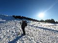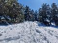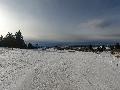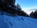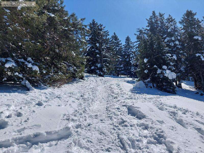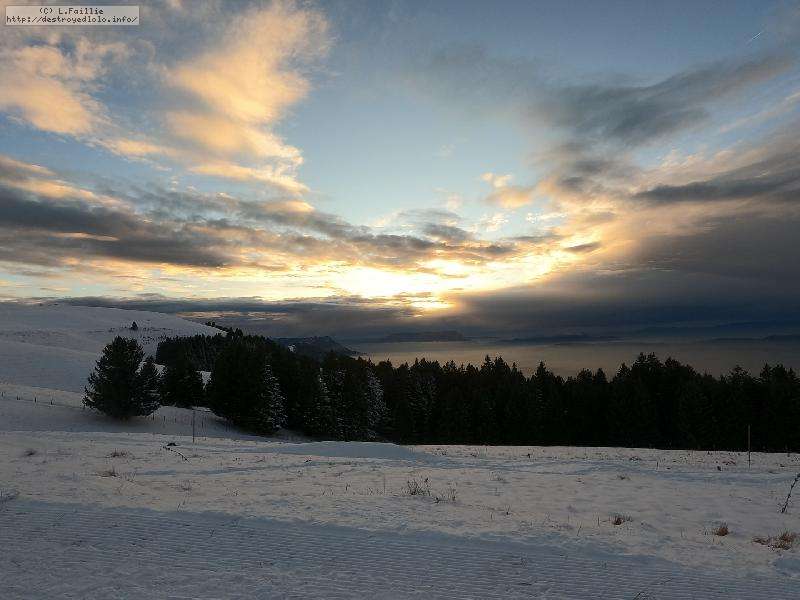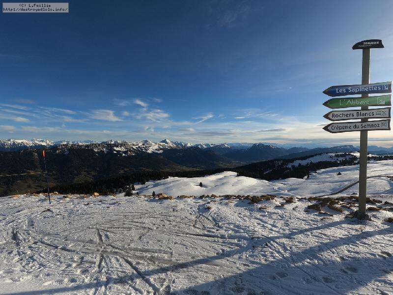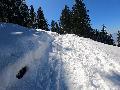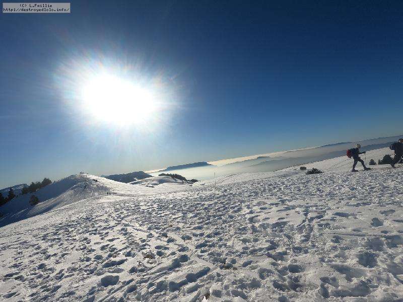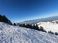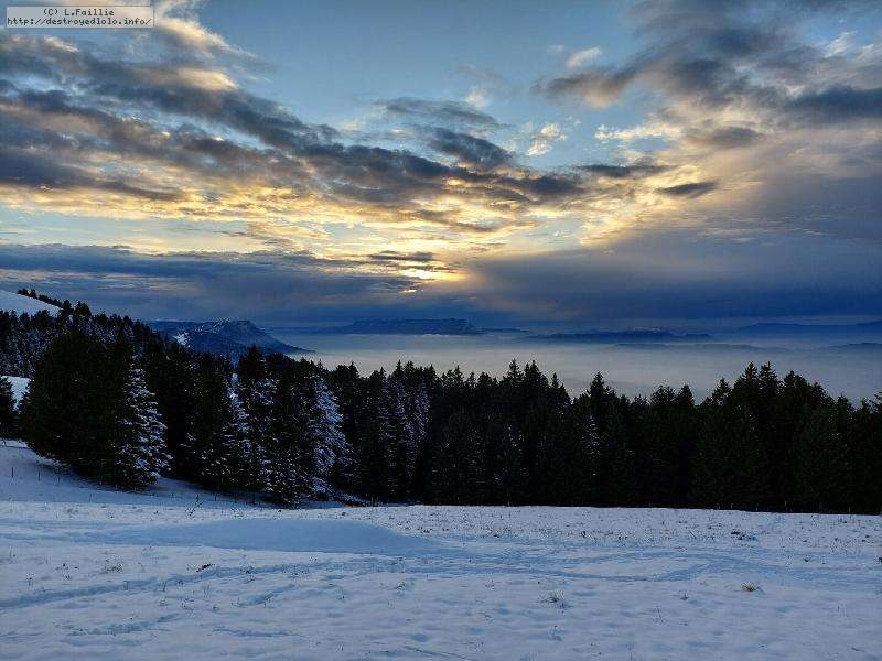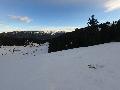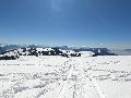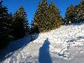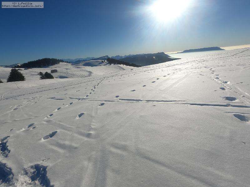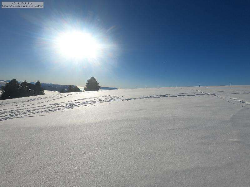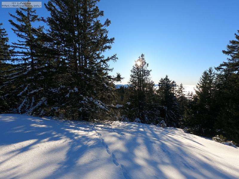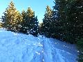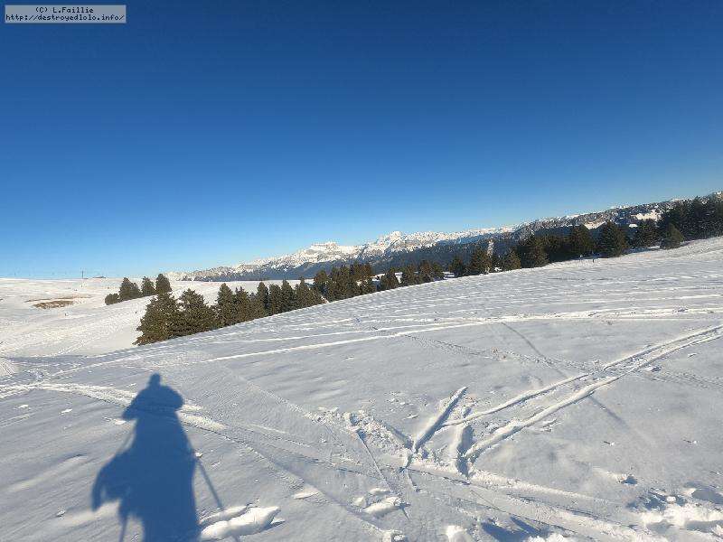 Je monte par la piste "raquette" (avec une bonne dose de hors piste) jusqu'au crêt de l'Aigle : la neige est lourde, collante, il faut dé-saboter souvent. La couche est suffisante pour ne pas toucher (sauf au crêt lui-même).
