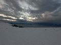 Et bien agréable surprise : il y a une belle couche de glace ... partout qui protège des requins, avec dessus 4 ou 5 cm d'une peuf lourde.