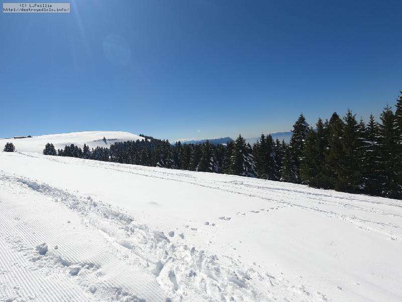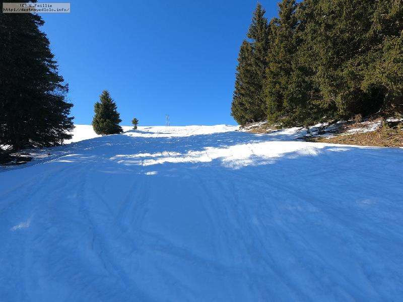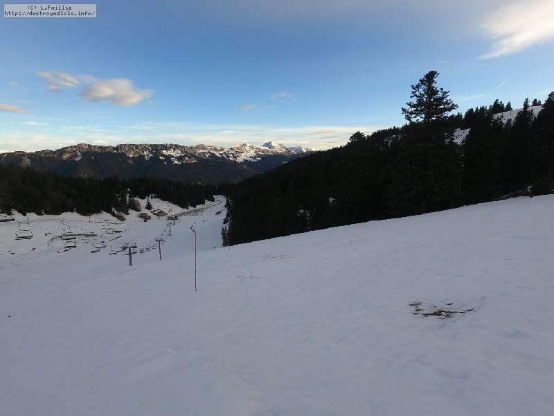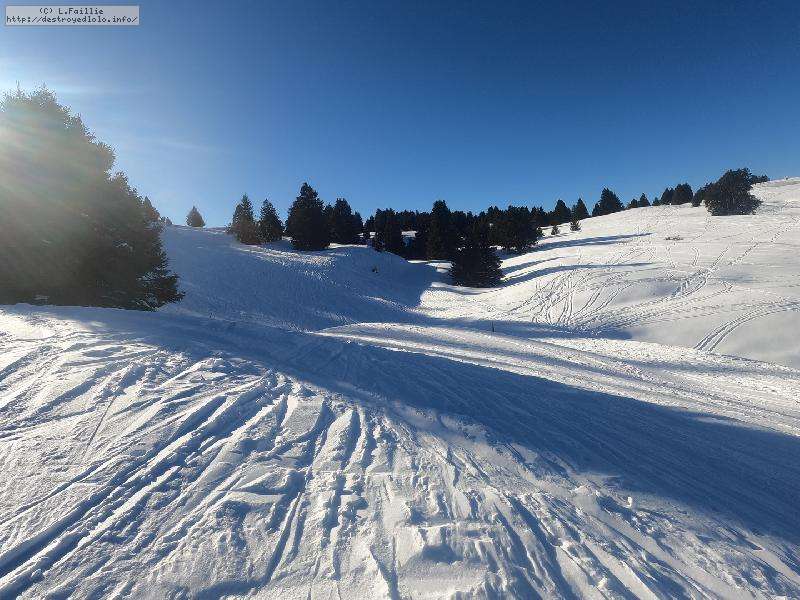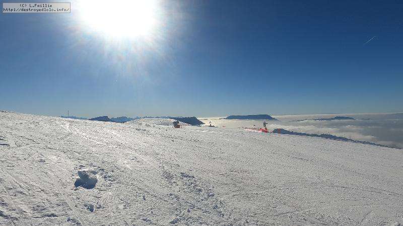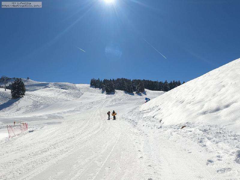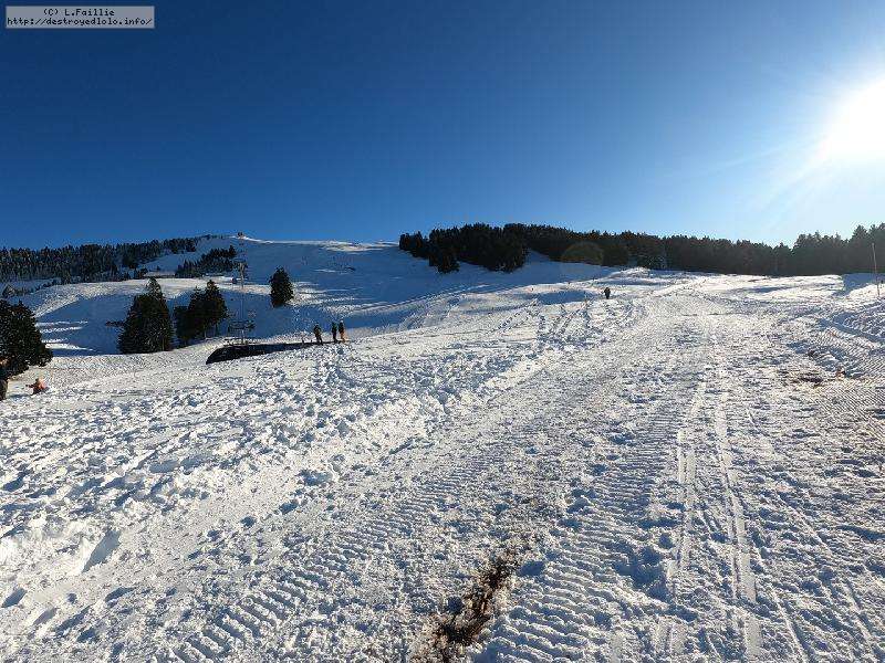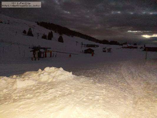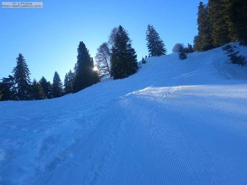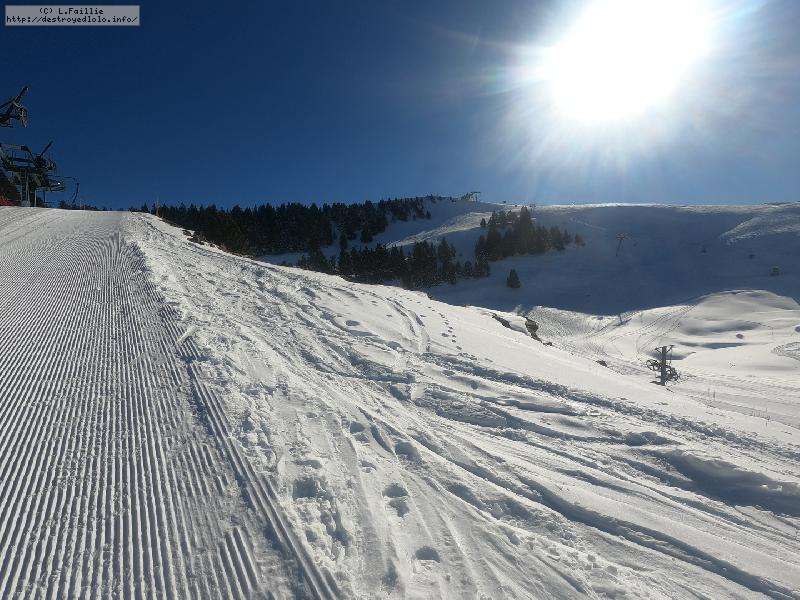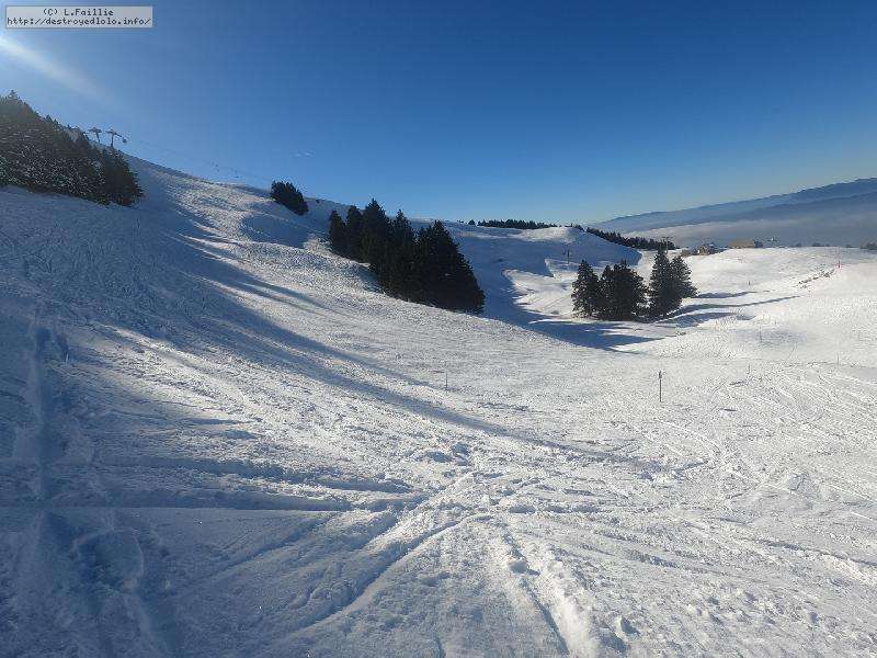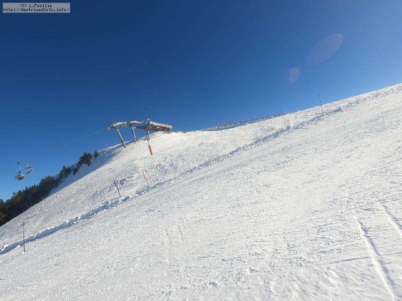 Le côté Bauge justement est fermé bien que la neige y semble suffisante (sans doute pour préserver la ressources avant l'arrivée des touristes) ... mais les dameuses ont déjà bien massacré les hors pistes ... et la piste elle-même d'ailleurs. Pffff