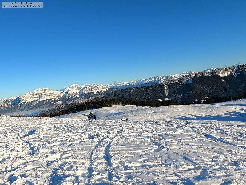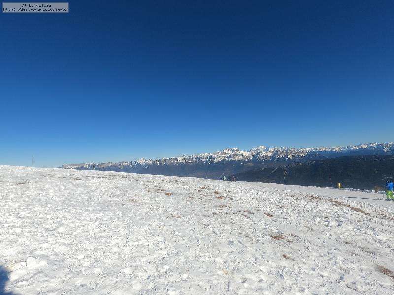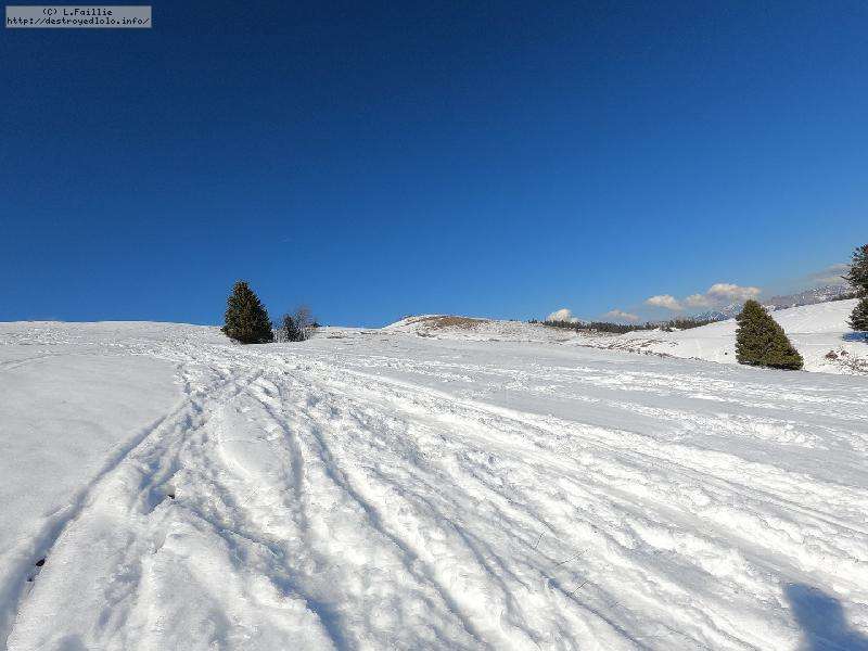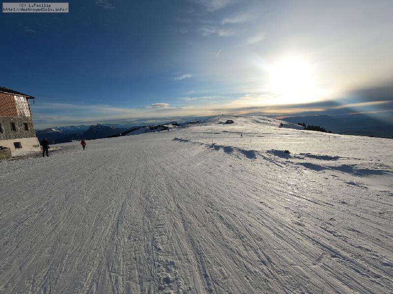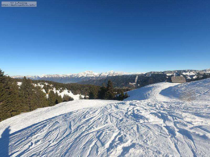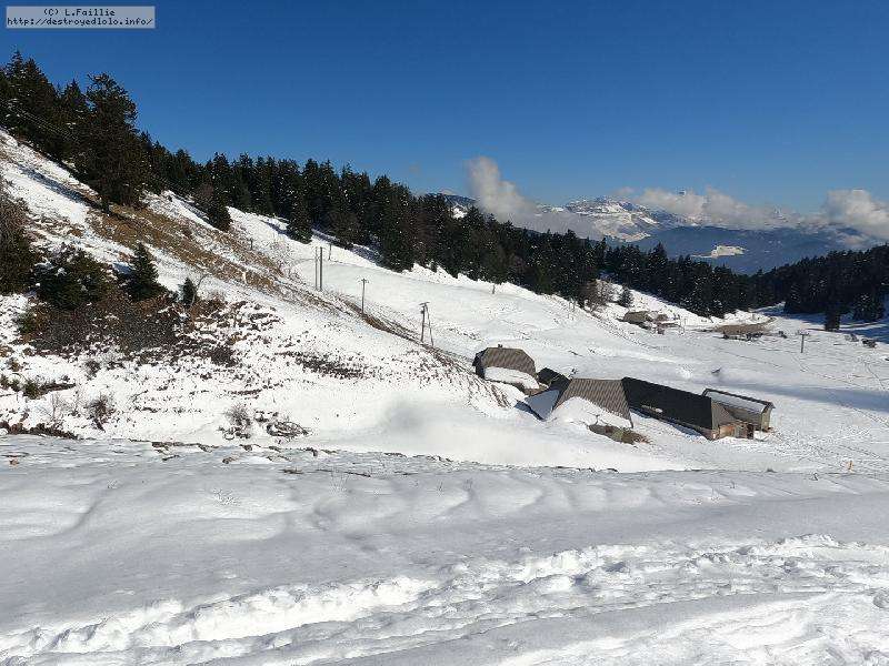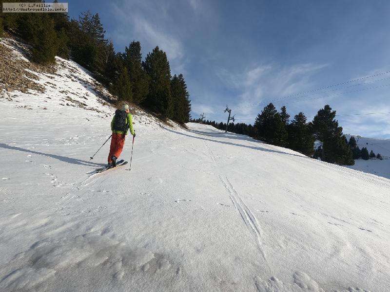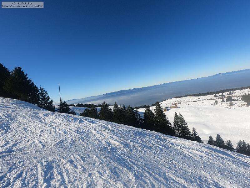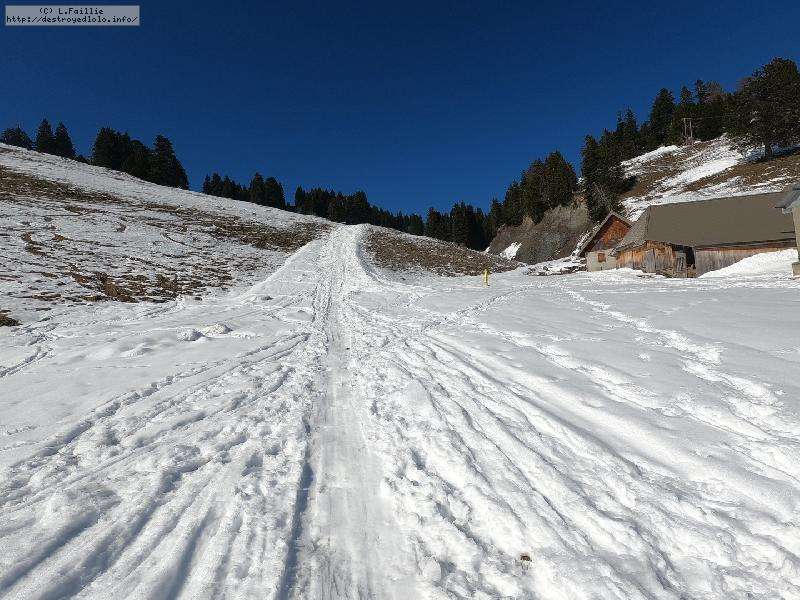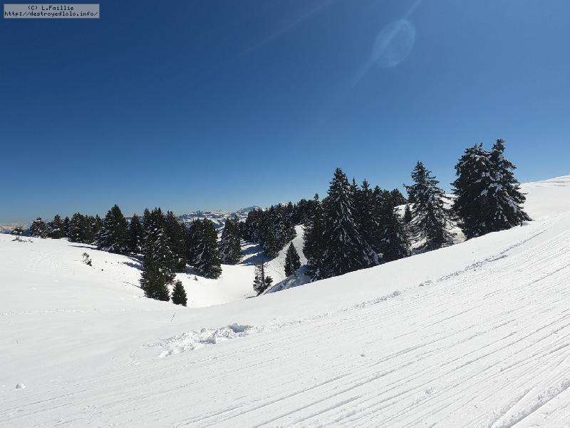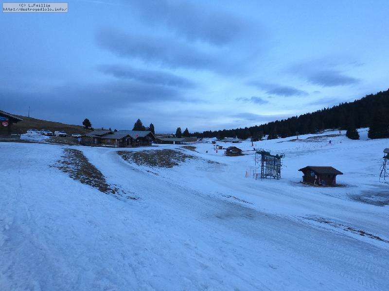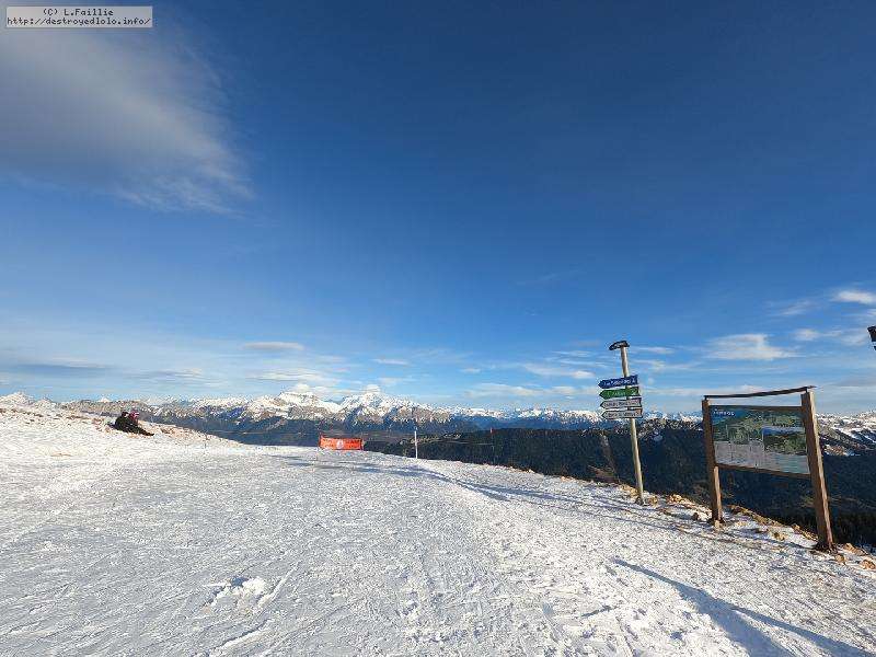 Le côté Bauge justement est fermé bien que la neige y semble suffisante (sans doute pour préserver la ressources avant l'arrivée des touristes) ... mais les dameuses ont déjà bien massacré les hors pistes ... et la piste elle-même d'ailleurs. Pffff