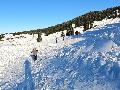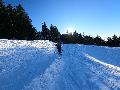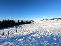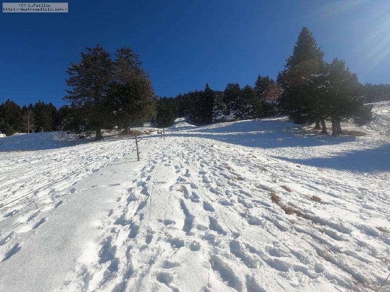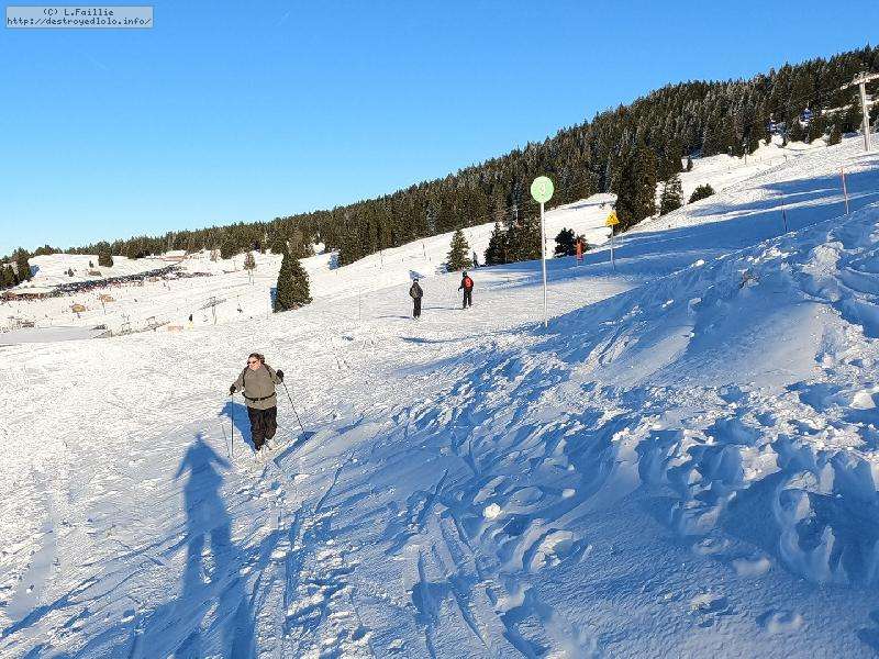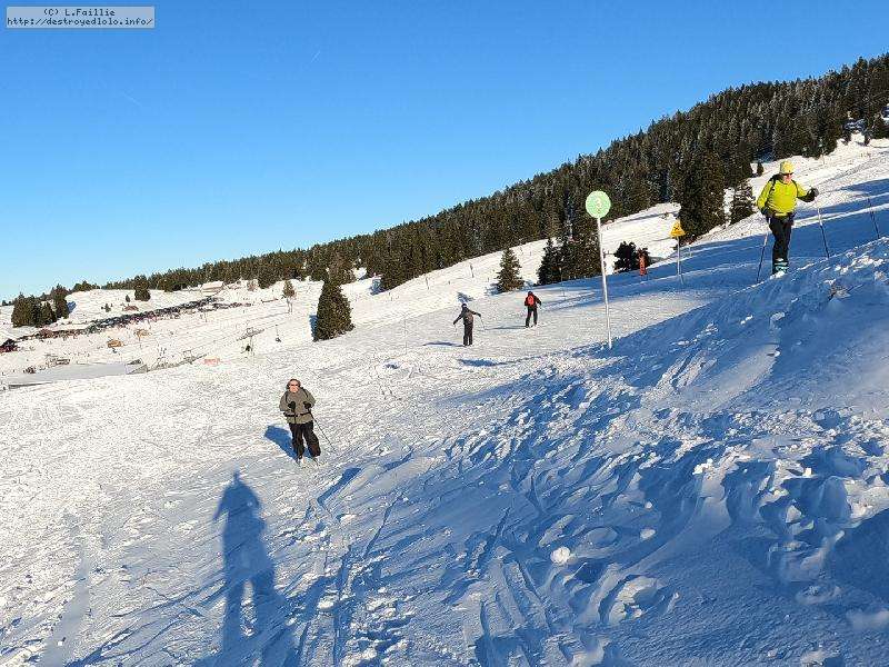 La station est fermée, elle est toute à nous. Pas mal de randonneurs que ce soit en skis ou en raquettes, et les fondeurs bien sûr.La neige est bien présente, quelques plaques de terre sur le bas à cause du passage. Les pistes ont été damées ... ça sera utile pour la descente, on y reviendra.