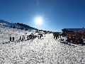 Les parkings sont pleins et les queues s'allongent aux remontées même si on a vu pire (on s'en fout, on est là pour sortir les peaux ).