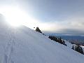 La montée côté Annecy n'est pas des plus agréable : la neige, lourde, colle en gros paquets sous les peaux et il y a un petit vent au sommet.