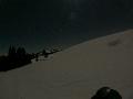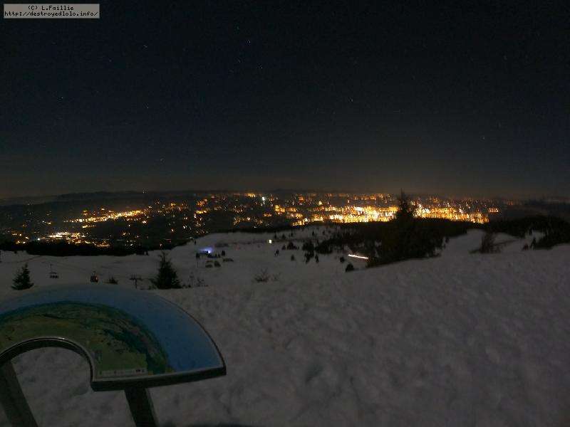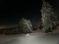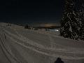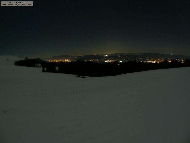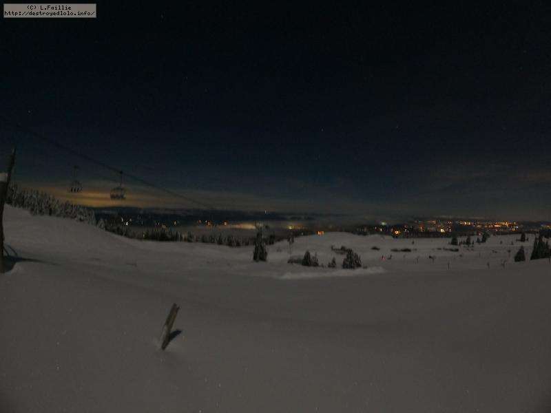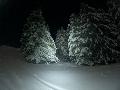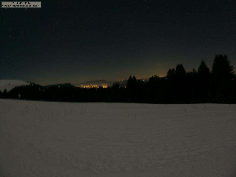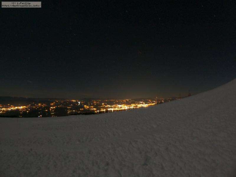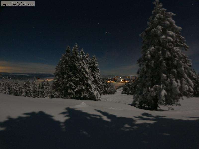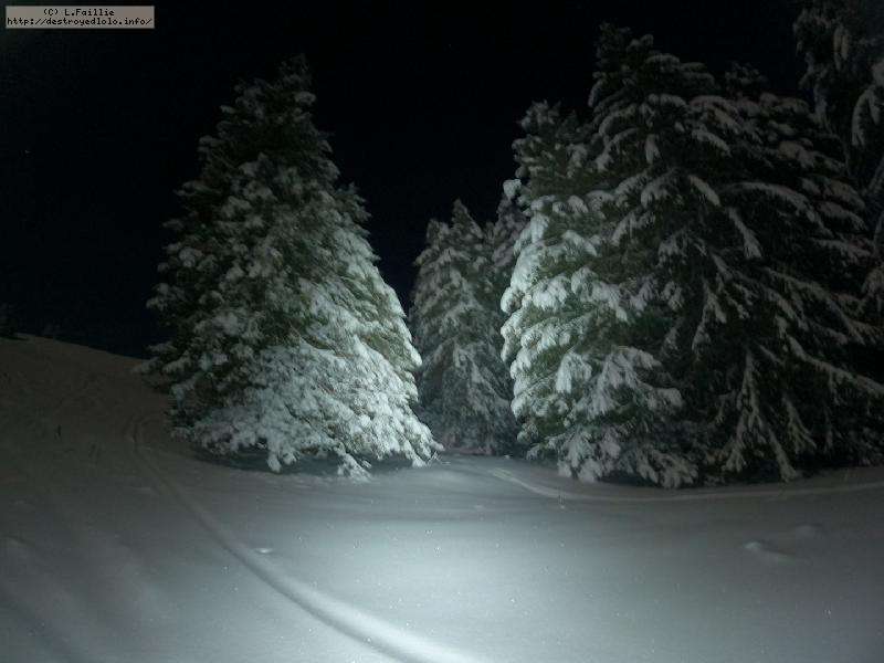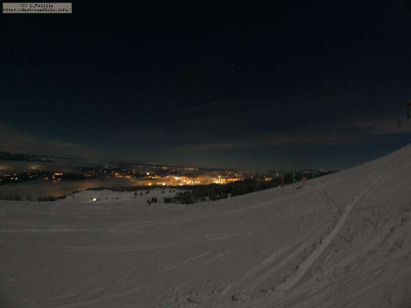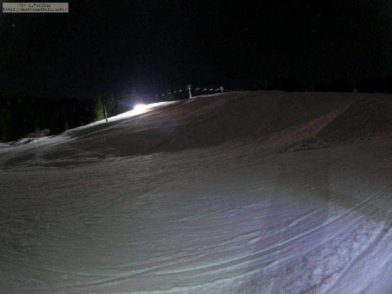 Sortie décidée au dernier moment avec une amie et un collègue ... Départ à 19h30 ... bien trop tard pour le coucher de soleil, mais "beaucoup" de monde (pour l'heure) : au moins une 15e de personnes !!! Sans compter le service des pistes, car ça dame partout : du coup, on monte par la "trace" raquette/rando sur le bas de "bucheron" où nous serons seuls, l'autre groupe qui part en même temps que nous passe par le domaine skiable.