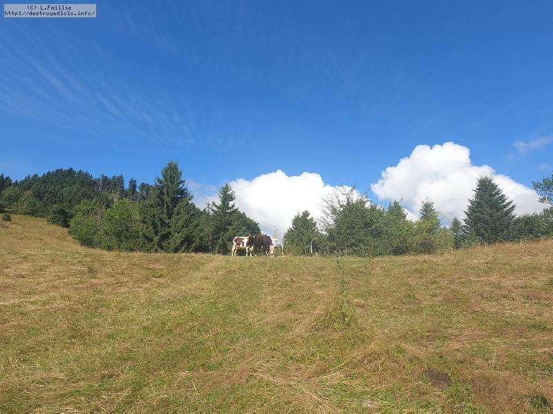 Alors que le CR du Pré Paget tourne à droite en direction du Chalet Chappuis, nous bifurquons à droite (point 1 sur la carte) à travers champ ... au milieu des vaches.