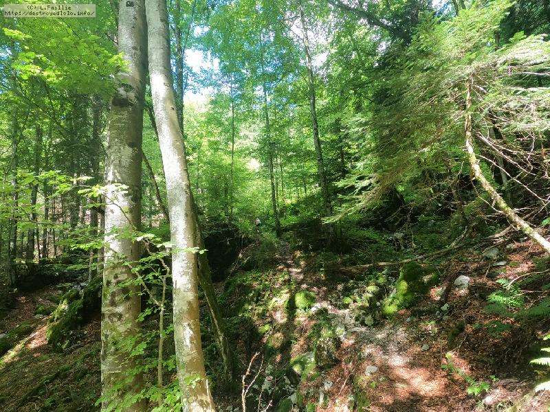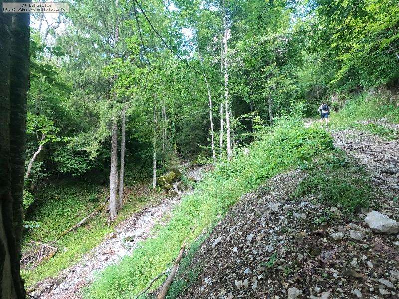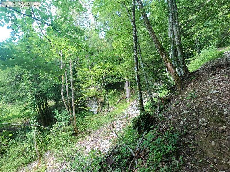 On redescend sur Dingy : le sentier devient plus pentu, mais reste forestier : les racines, les rochers rendent la progression agréable.