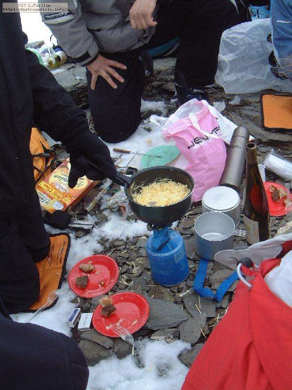... et fondue. Ça troche pas mal : heureusement qu'il n'y a pas de contrôles alcoolémie sur les pistes (et qu'on rentre en car).