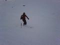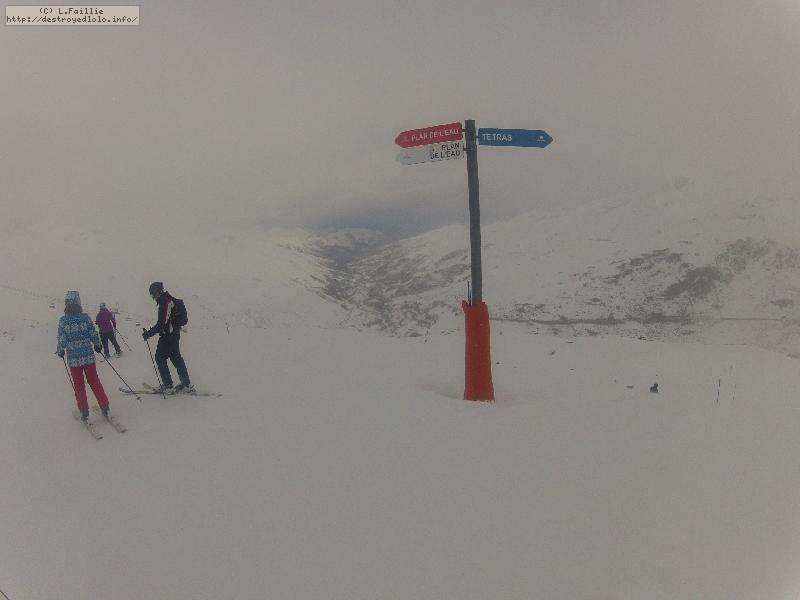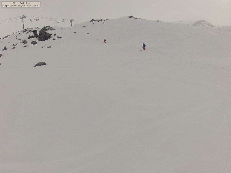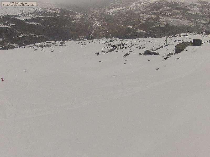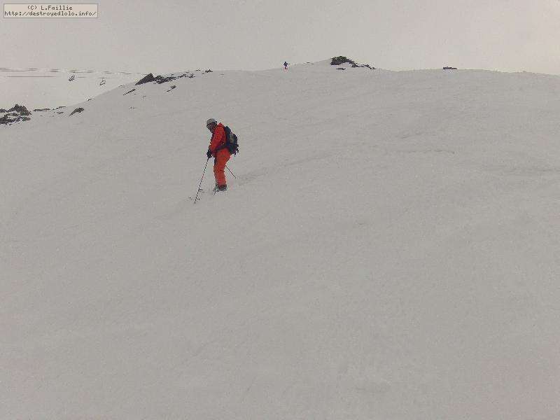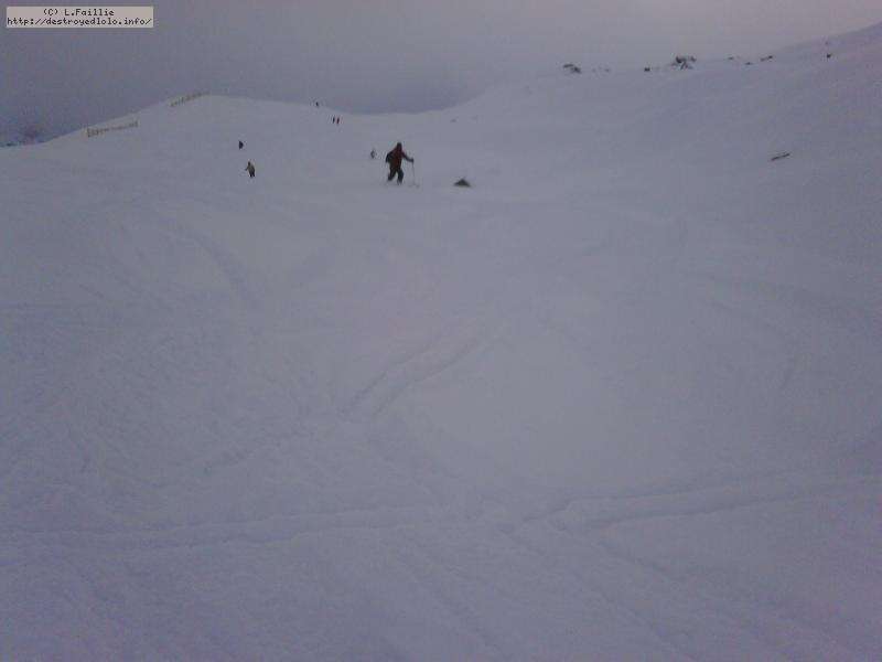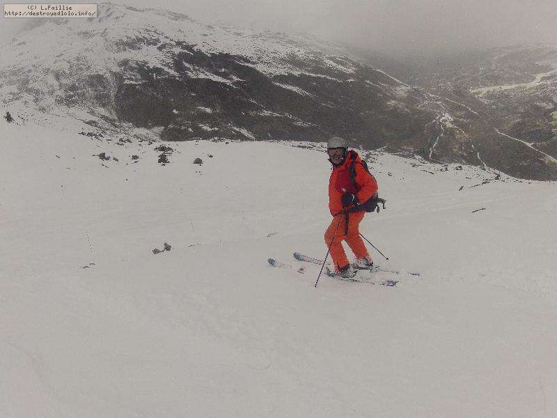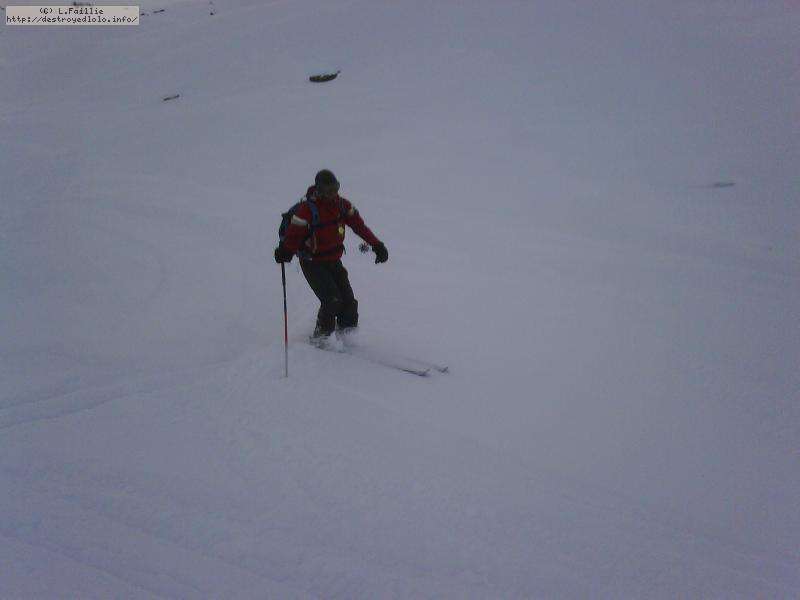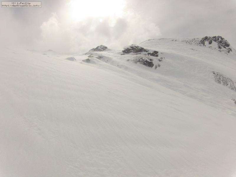Le vent se lève ... très fort : c'est même la tempête, mais ça à l'avantage de fournir de la visibilité et de ramener de "la fraiche". Bref, quelques décentes bien sympas sur les bords de la piste "arolles" ... pour peu qu'on arrive à vaincre le vent sur le haut.