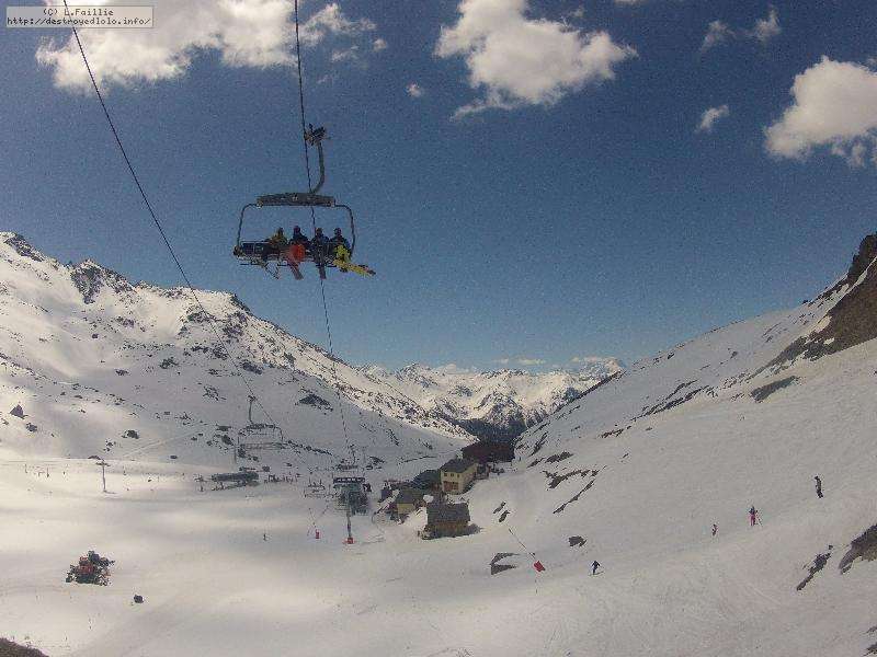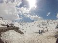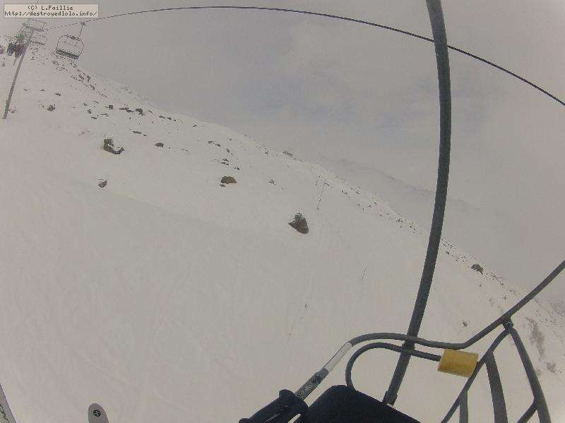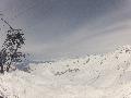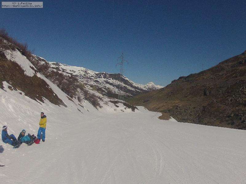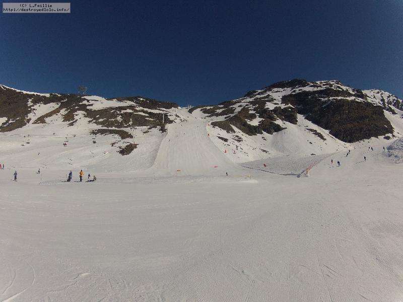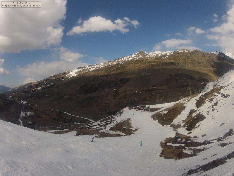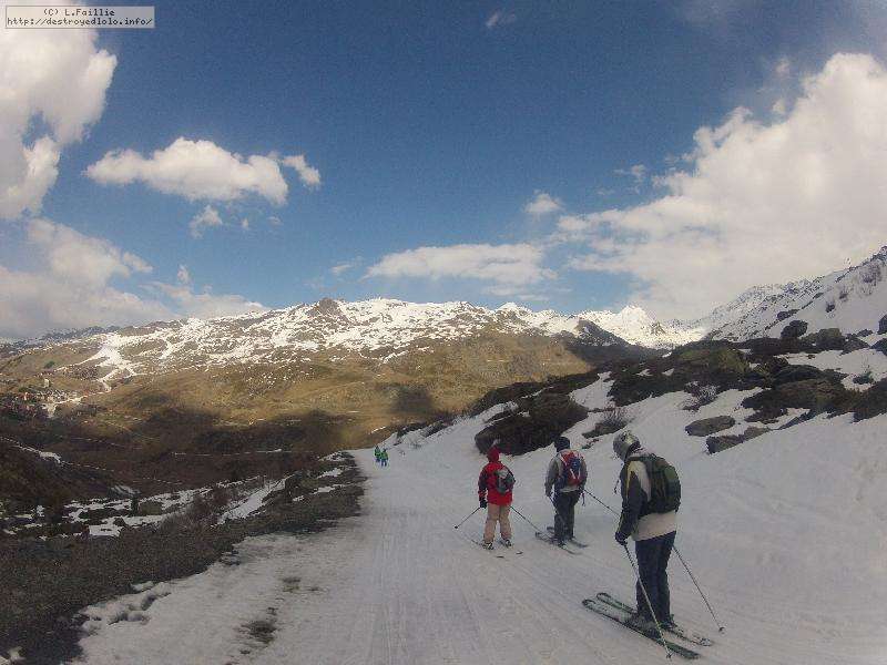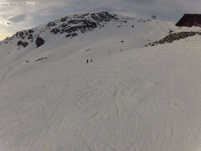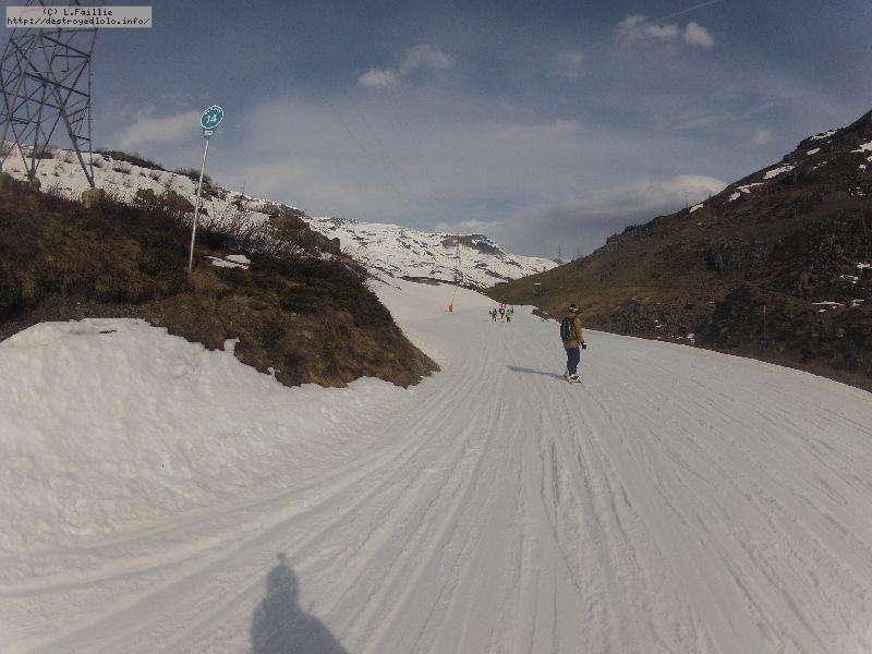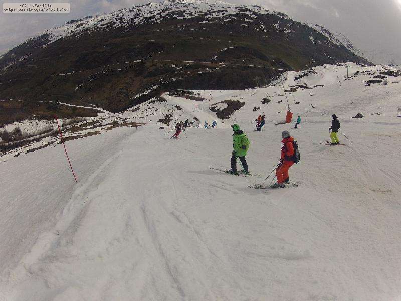 L'arrivée fait peur ... quasiment pas de neige au niveau de la station. Heureusement, et comme ce fut le cas depuis le début de cette saison sans neige, les dameuses ont fait un bon boulot et quasiment aucun cailloux sur les pistes. Bonne bonne glisse !