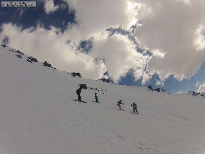 Le premier jour est sous le soleil ... mais quel vent ! Le haut est évidemment fermé, mais on trouve aussi des coins peufiens grâce aux accumulations.
