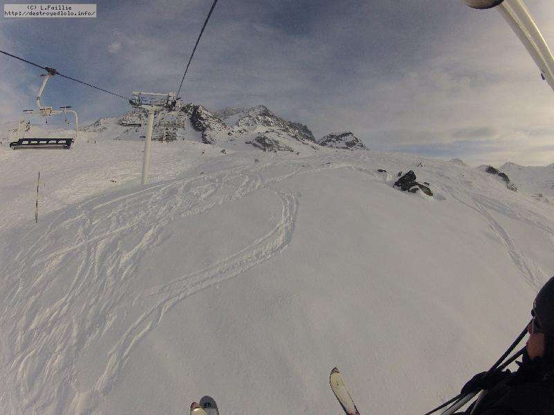 Etrangement, le téléphérique de la Cime Caron reste bien protégée (hormis bien sûr la gare d'arrivée), et avec la peuf qui vient de tomber ... grosse éclate hors-piste.