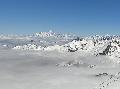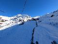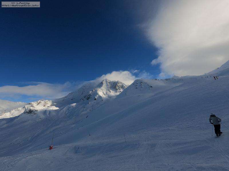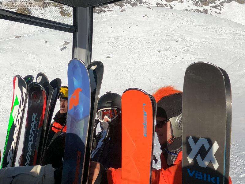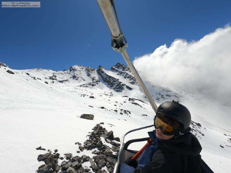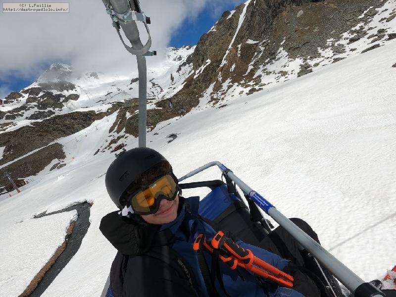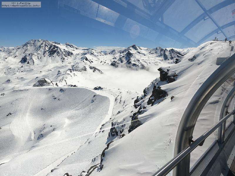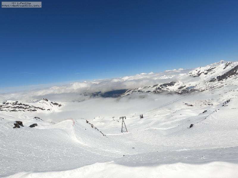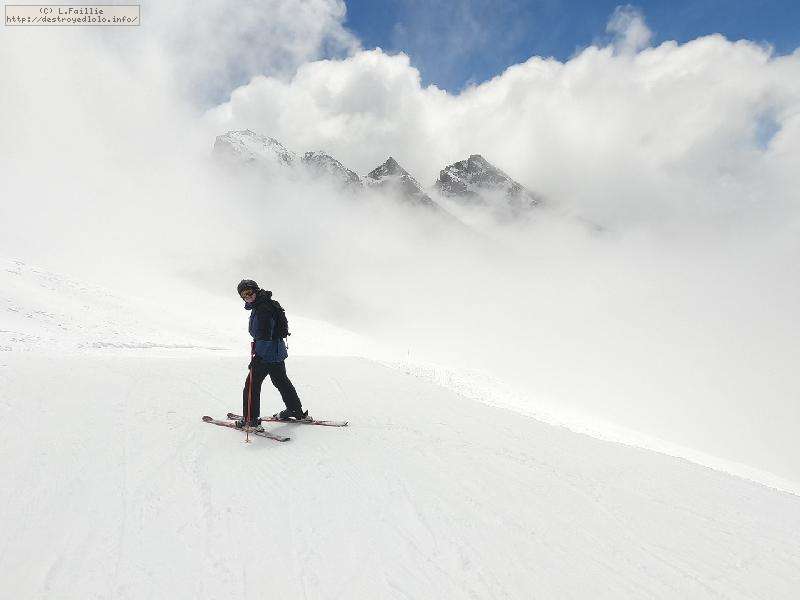 La journée fût même globalement ensoleillée, juste parfois la couche de nuages à traverser : du coup, il fait chaud et la neige est soupienne à toutes les altitudes, y compris à 3200, voire très collante en hors piste (qui devient impossible)