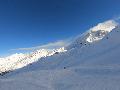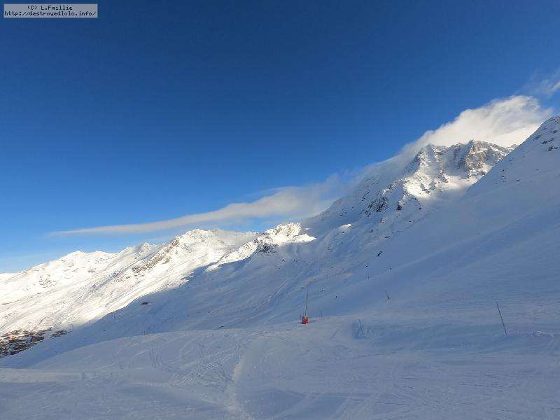 Beaucoup de vent en hauteur, ce qui fait que le téléphérique ne tournera pas, mais comme c'est vraiment très localisé sur les crêtes, ca ne gênera pas la glisse.