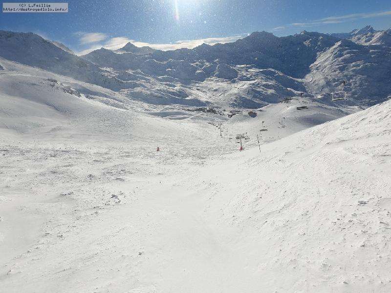 Il a beaucoup plu en vallée mais avec une limite pluie neige très haute pour la saison : heureusement, Val Tho est au-dessus de ça et une ch'tite couche de fraiche bien sympa n'attend que nous. Les pistes sont super agréables et les hors pistes peuffiens ... du moins sur les parties restées dans l'ombre.