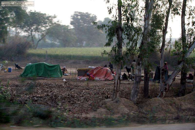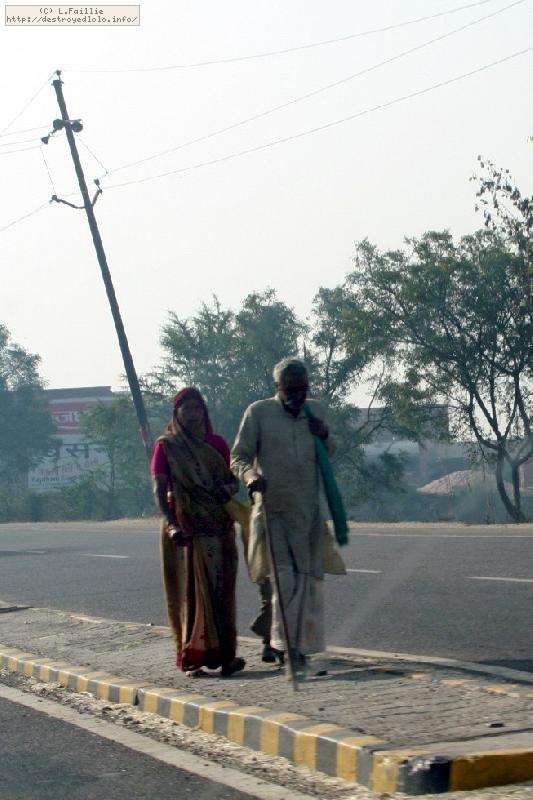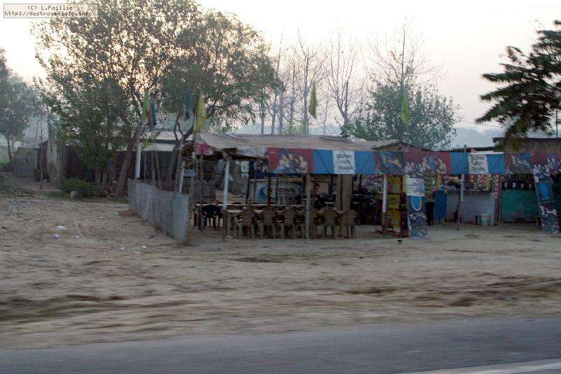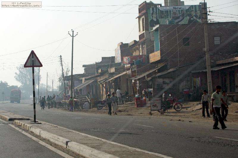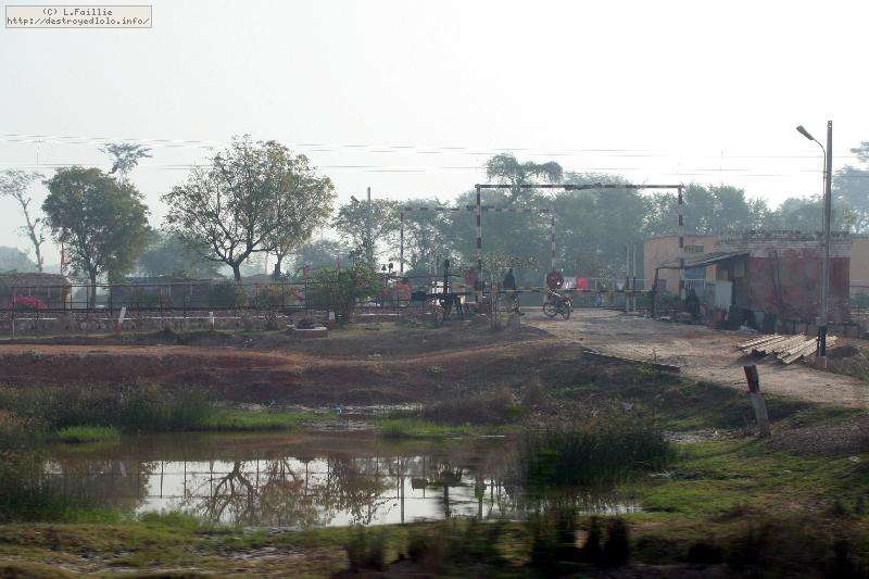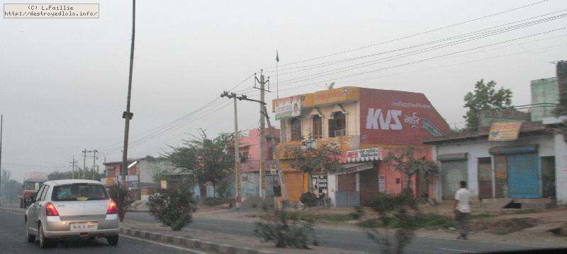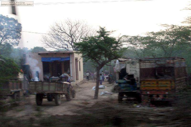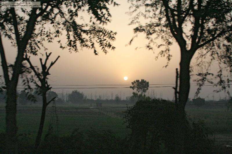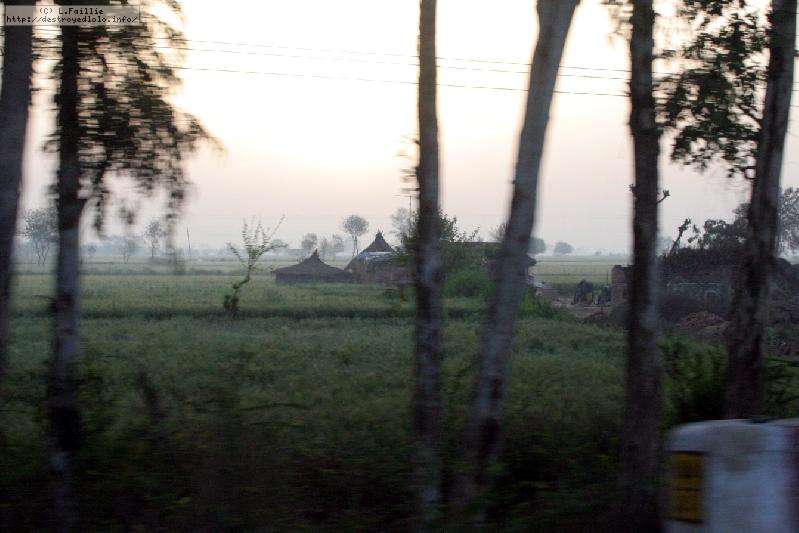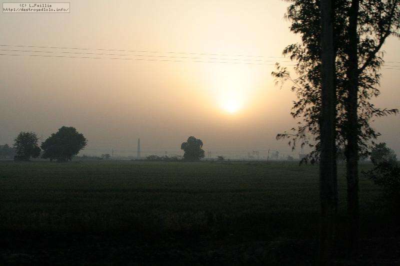 Voilà, on est sorti de la ville ... que c'est plat ! (réflexion bien entendu totalement savoyarde). Le soleil se lève sur des paysages on ne peut plus exotiques et là est le grand intérêt de cette route : on est très loin de l'ambiance plus ou moins occidentalisée de la capitale, on pénètre dans l'Inde rurale ; un autre monde.