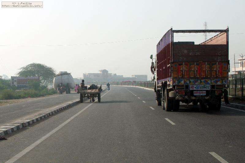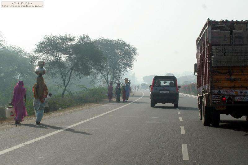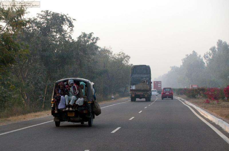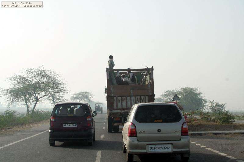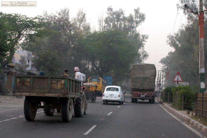 Nous sortons donc de New Delhi aux aurores (même si ça ne se voit pas trop sur les photos, merci les 1200 ISO du Canon). La circulation est déjà relativement importante.
