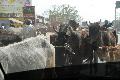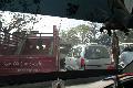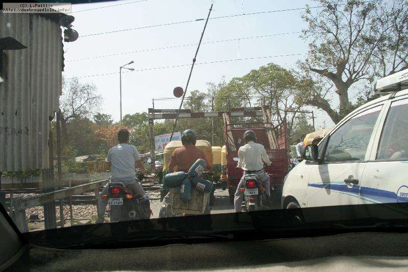 Puis, tout à coup, bouchon : un accident, une manif ? Rien de tout cela : simplement un passage à niveau fermé. Et là, surprise : une myriade de marchants ambulants sortent de nul-part à l'assaut des voitures arrêtées, parfois avec des charrettes (car contrairement aux autres bouchons auxquels nous avons été confrontés, les voitures ne sont pas les unes sur les autres). Mes collègues en profitent pour acheter quelques fruits frais ; rafraichissant. Nous découvrirons aussi de l'autre côté du passage à niveau pleins de petites échoppes construites sur le bord de la route : visiblement, c'est un bon coin pour l'artisanat local.