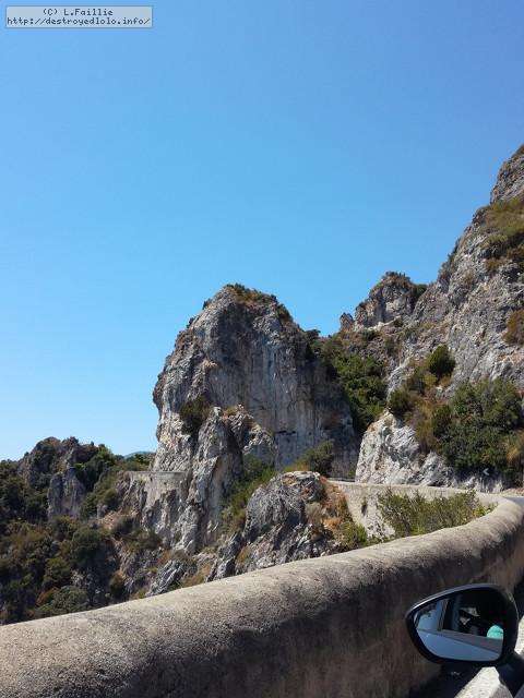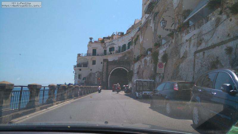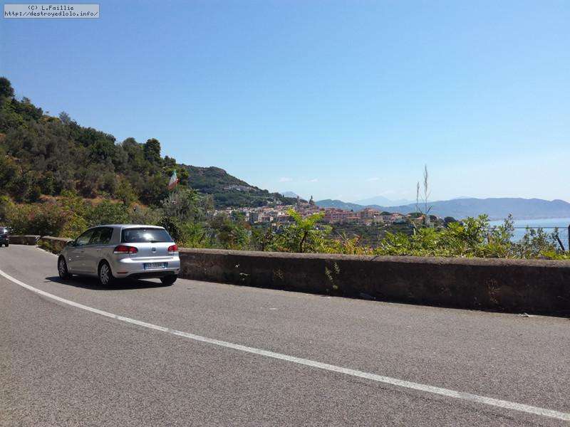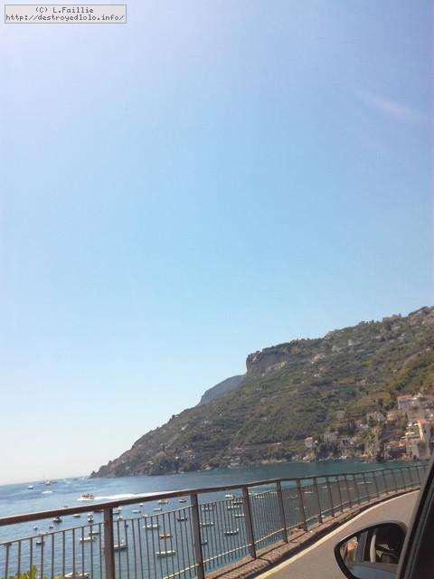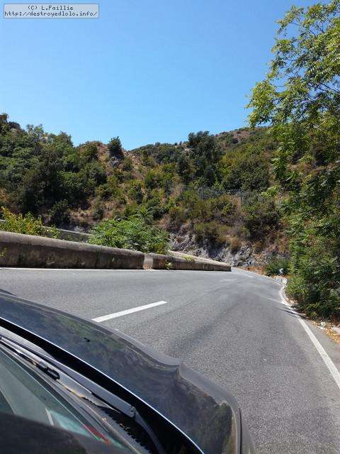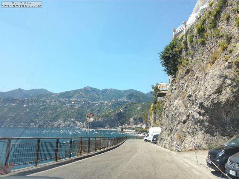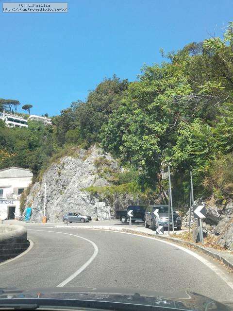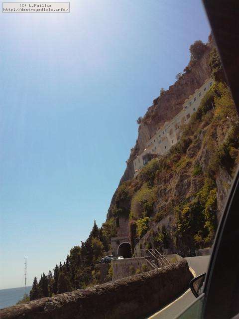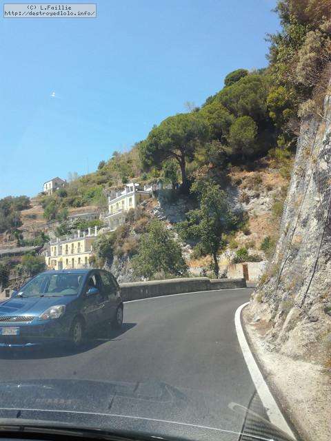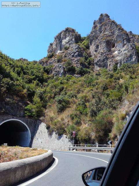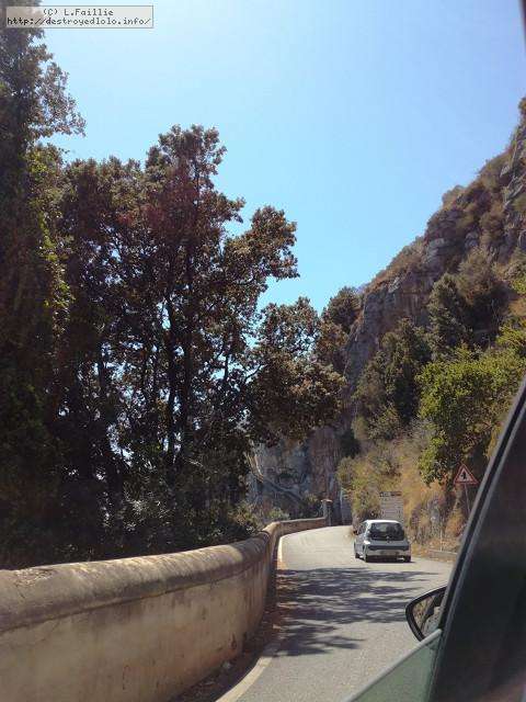 Mouai, elle ne nous a pas semblée si difficile que ça, même avec notre C5 break version bateau (mais habitant dans les alpes, on a l'habitude de routes de montagne beaucoup plus étroites) à l'exception de l'Italien qui visiblement ne sait pas y rouler : les gens sont systématiquement en plein milieu, non pas pour couper les virages comme j'avoue humblement le faire, mais simplement ... pour être au milieu ! Se rajoutent aussi les cars de touristes : on roulera donc vitres ouvertes pour les entendre klaxonner.