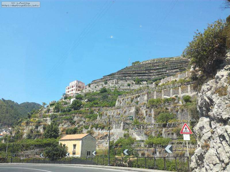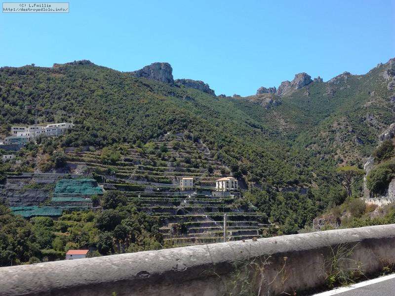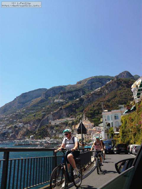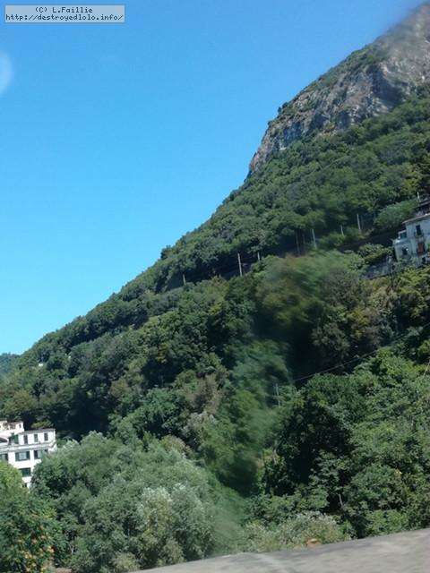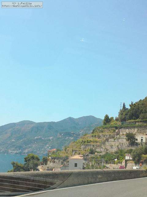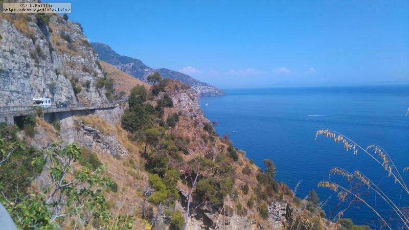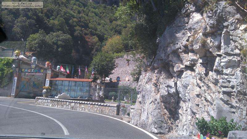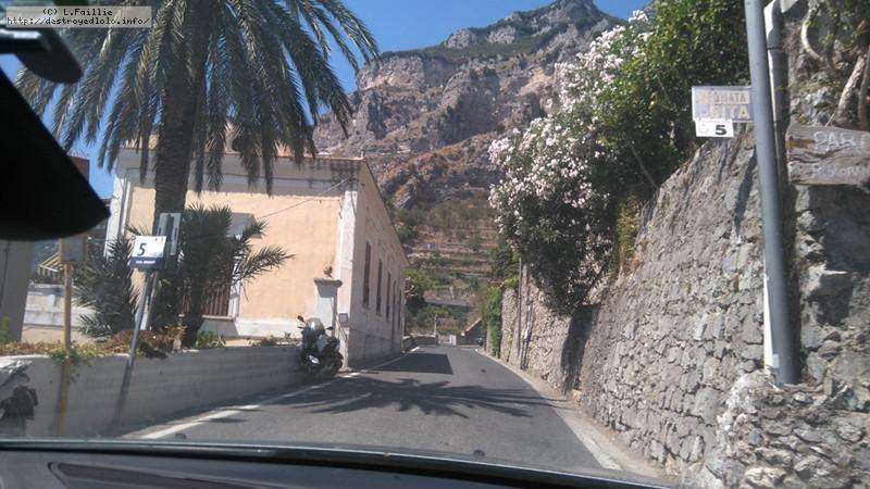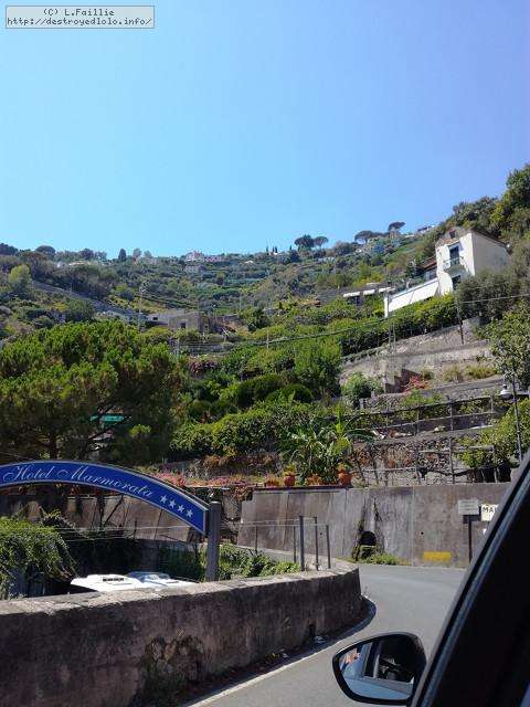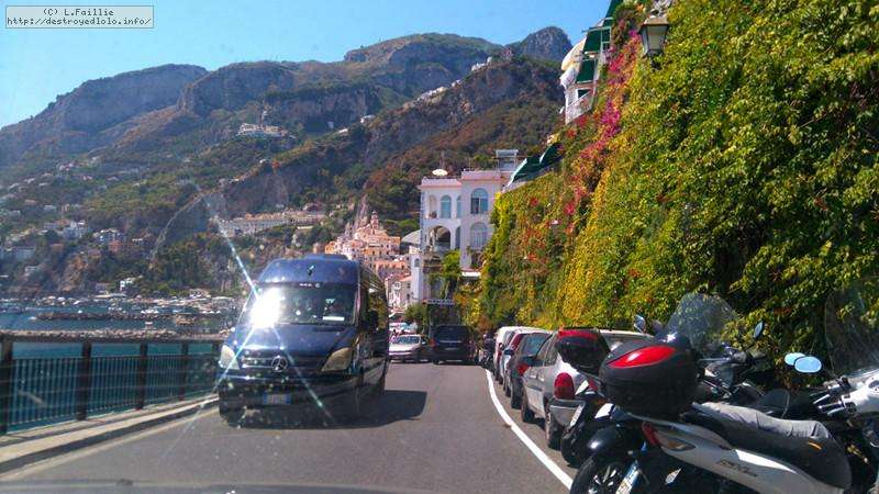 Mouai, elle ne nous a pas semblée si difficile que ça, même avec notre C5 break version bateau (mais habitant dans les alpes, on a l'habitude de routes de montagne beaucoup plus étroites) à l'exception de l'Italien qui visiblement ne sait pas y rouler : les gens sont systématiquement en plein milieu, non pas pour couper les virages comme j'avoue humblement le faire, mais simplement ... pour être au milieu ! Se rajoutent aussi les cars de touristes : on roulera donc vitres ouvertes pour les entendre klaxonner.