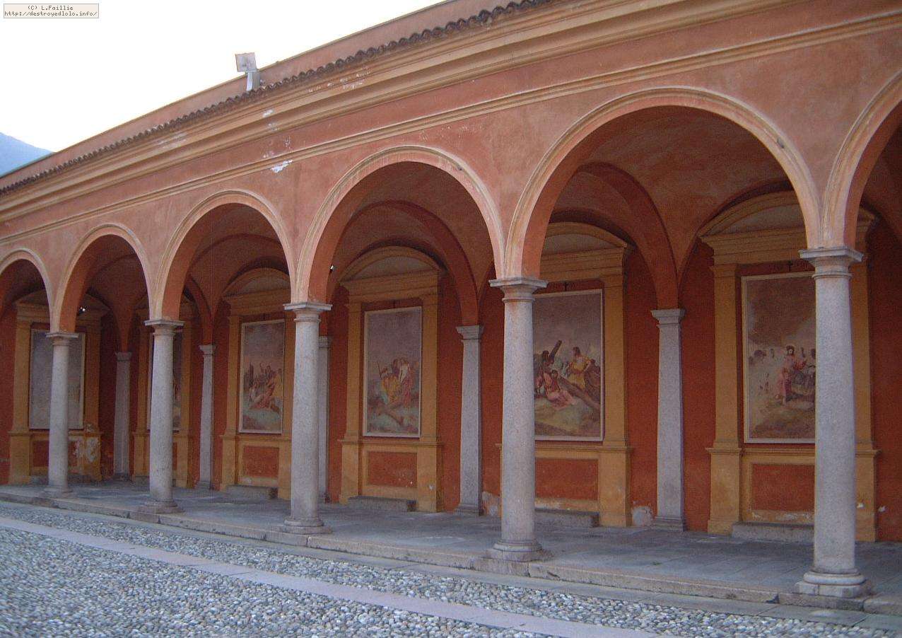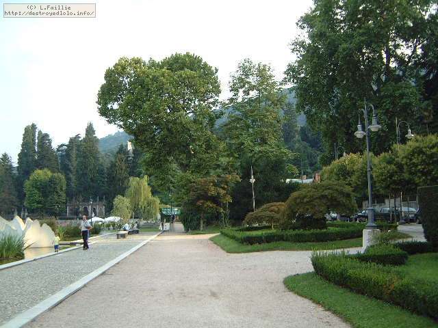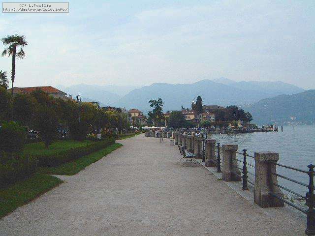 Baveno est avant tout un lieu de vacances, tout en longueur, coincé entre le lac et les montagnes. Pour la petite histoire, il s'enorgueillit d'avoir accueilli la reine Victoria. Il y a quelques beaux palaces, et il ne faut pas manquer de faire une petite visite à l'église au baptistère octogonal de style renaissance. Le chemin de croix est à l'extérieur du bâtiment lui-même et les stations sont de beaux tableaux (et une bonne réfection ne ferait pas de mal à certains) protégés par une sorte de couloir. On peut admirer aussi quelques fresques peintes sur les murs de maison du quartier. Évidement, l'activité principale est le tourisme : les quais sont joliment fleuris et on peut dîner les pieds presque dans l'eau : c'est très romantique ... si on n'est pas gêné par la musique ! En effet, 2 restaurants sont côte à côte, on chacun un DJ et c'est un peu la guerre pour que les clients ne soient pas gênés par la musique du voisin. Mais pas de panique c'est très supportable. On a une très belle vue sur les îles Boromées depuis les quais, desquels on peut bien sur embarquer ... |