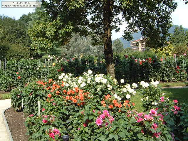 Le jardin de la villa Taranto fut créé par l'écossais Neil McEacharn qui en fît don à l'état italien à sa mort . De larges allées permettent de se promener entre les azalées, les dahlias, les camélias, etc. Les allergiques éviterons évidemment de s'y promener au printemps et le visiteur prudent préférera y aller le matin car, malgré l'ombre, il y fait vite chaud. En plus, si on suit le parcourt proposé, il y en a pour plusieurs kilomètres de marche mais pas de panique, il y a pleins d'endroits ombragés pour se reposer ... ou laisser passer un troupeau de touristes ! Jardin "à l'anglaise", c'est l'approche scientifique qui est privilégiée : chaque arbre, plante ou fleur a son étiquette. Les essences de même famille sont regroupées, et ce, parfois au détriment de l'esthétisme ... Le voyageur radin ou pressé préférera aller visiter les jardins d'Isola Madre ou d'Isola Bella, mais nous, nous ne regrettons pas la visite ... |